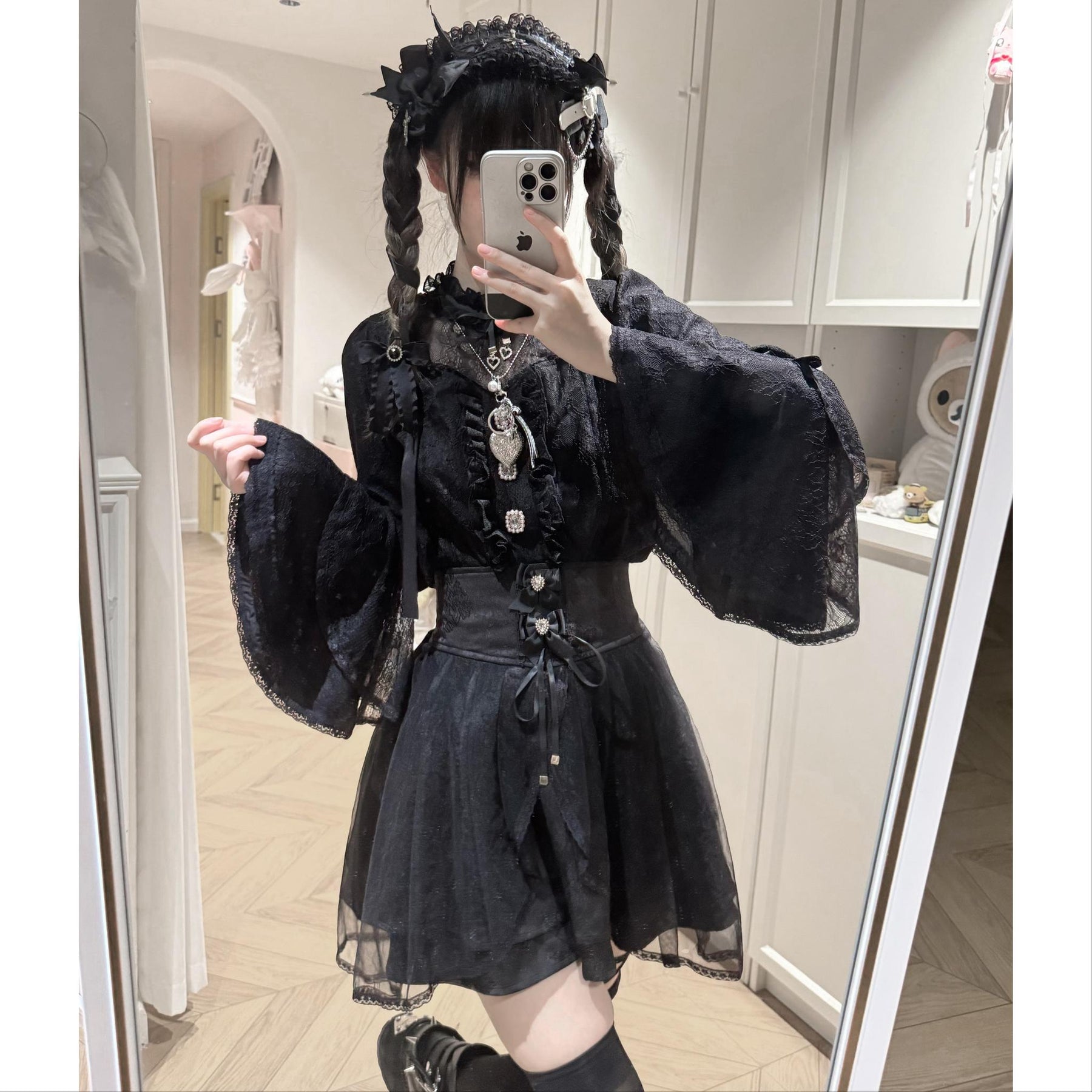 Jirai Kei Lace Blouse and Jacquard Skirt, Hime Sleeves (L M XL) 43943:792463