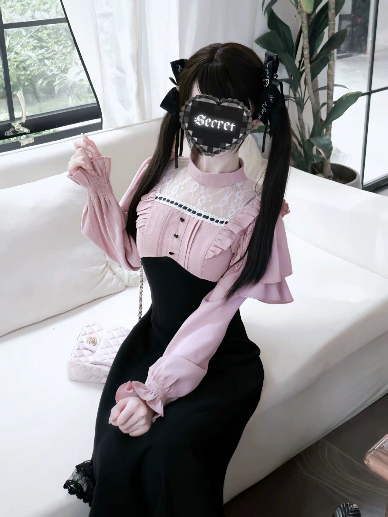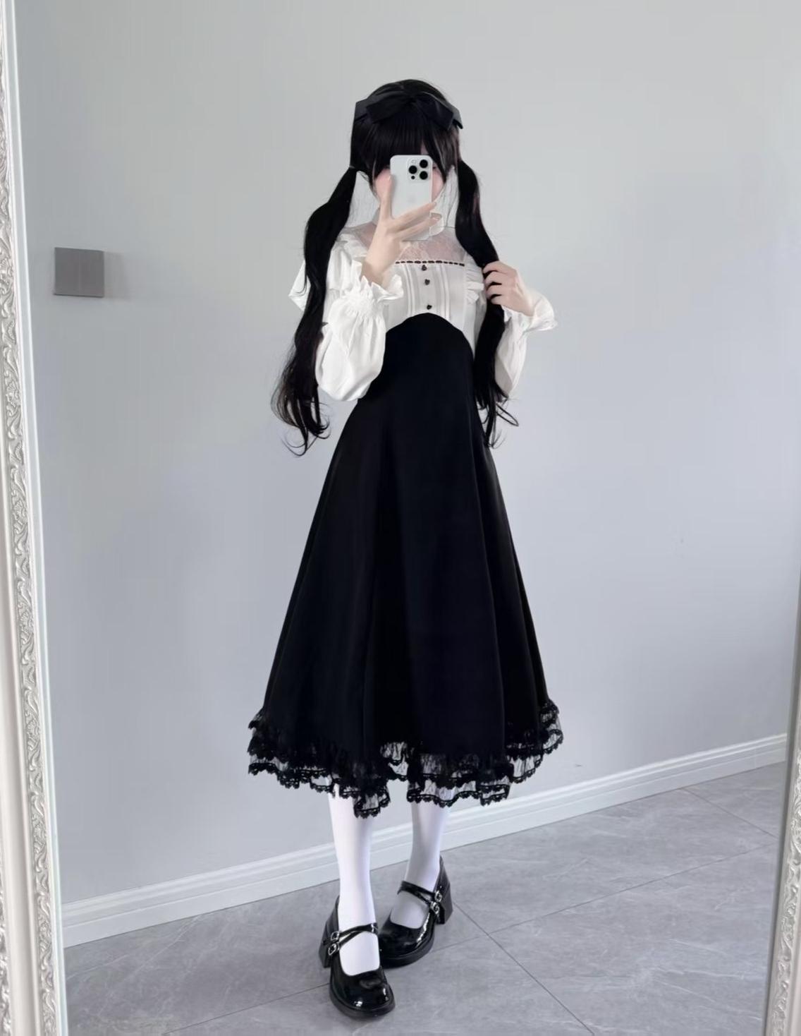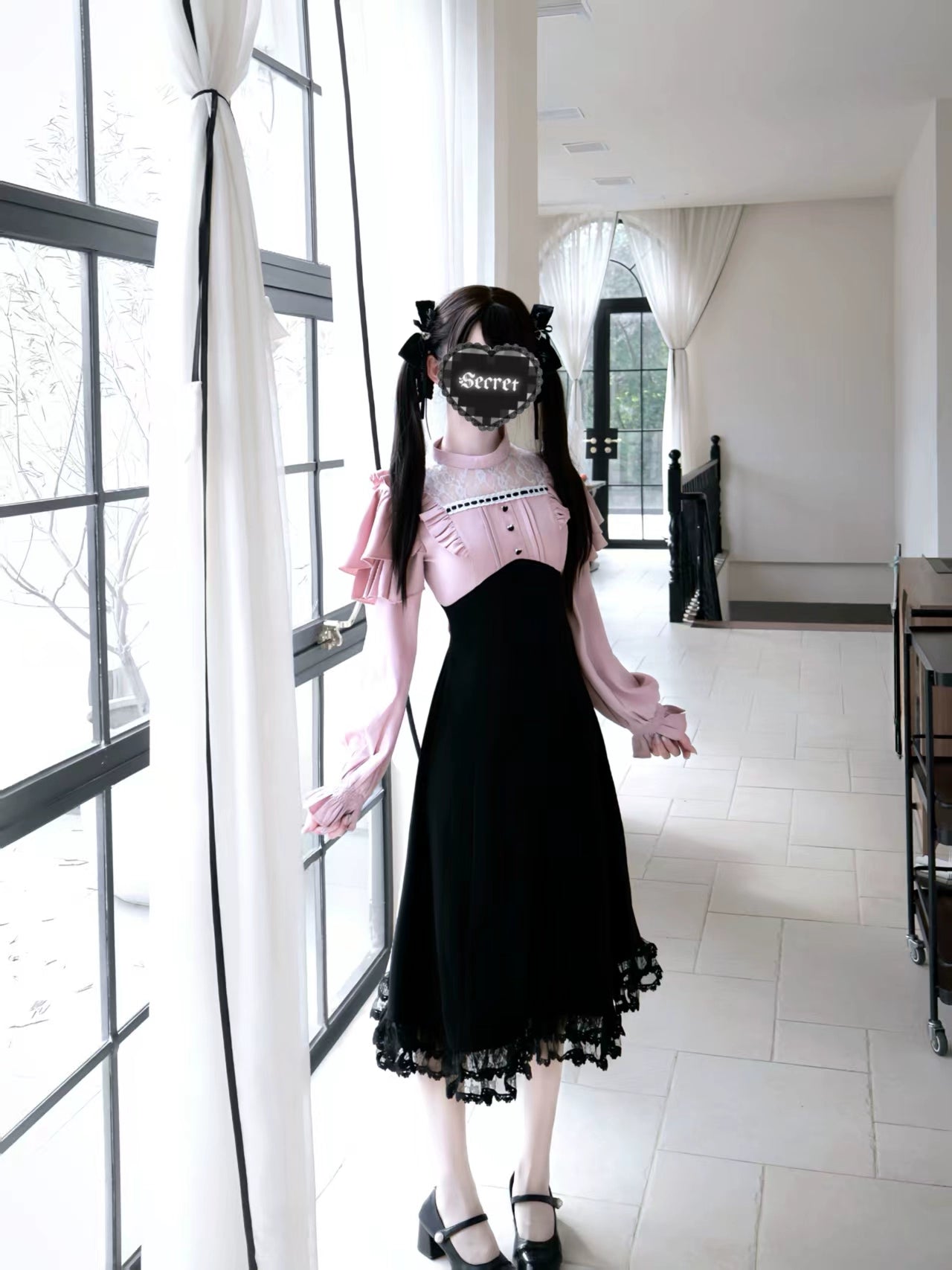 • Elegant Daily Dress: The two-tone design is paired with delicate lace trim, creating a layered look.