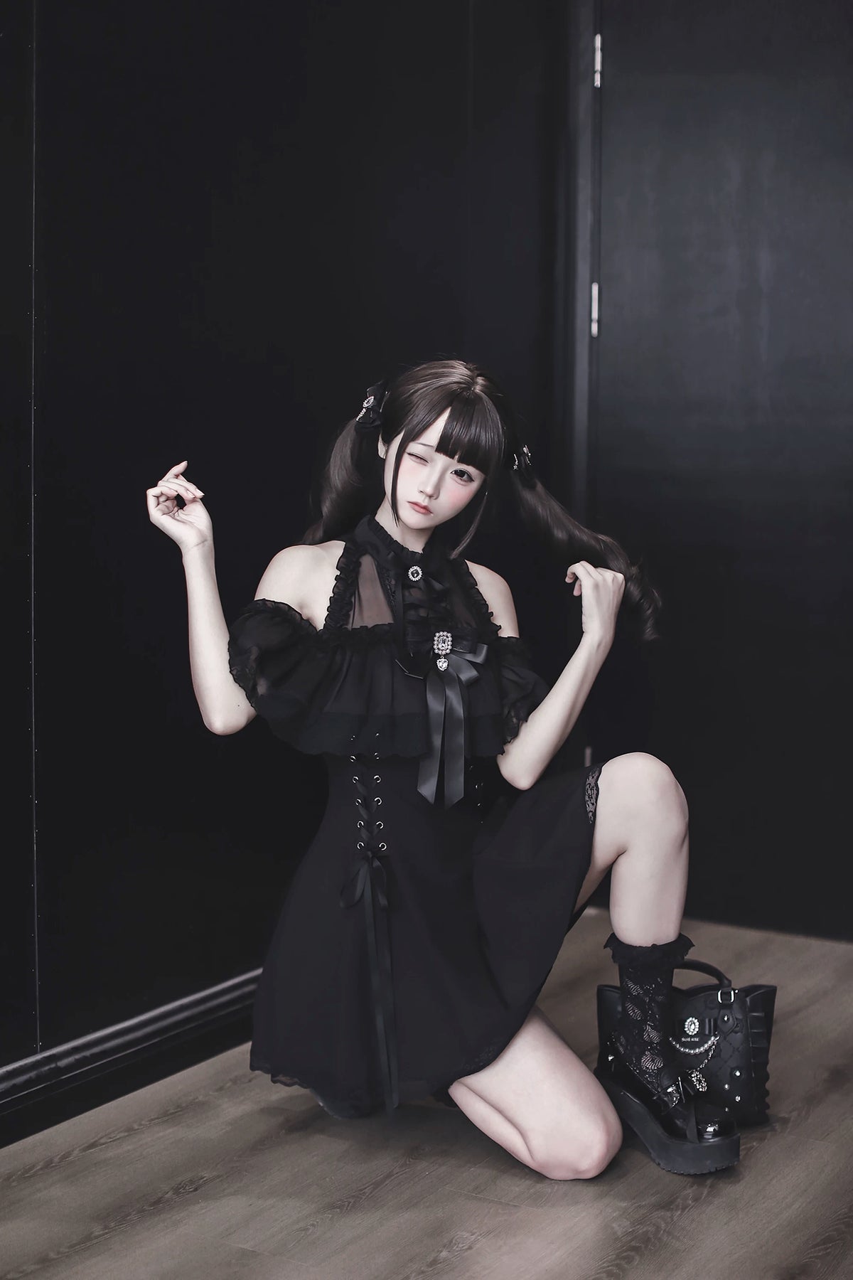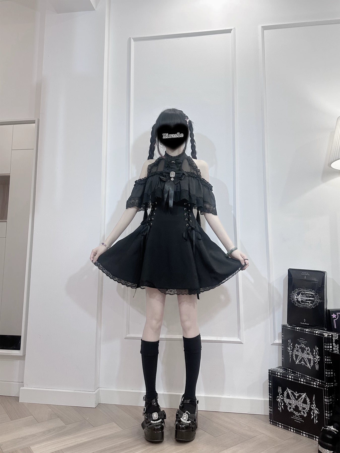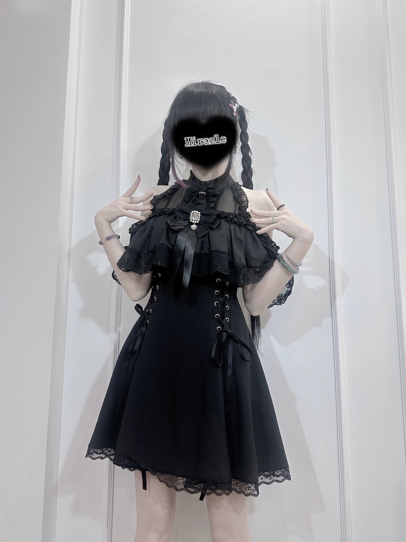 • Seiso Kei Dress: Features sheer lace at the neckline and an open-shoulder design for an elegant and feminine look.