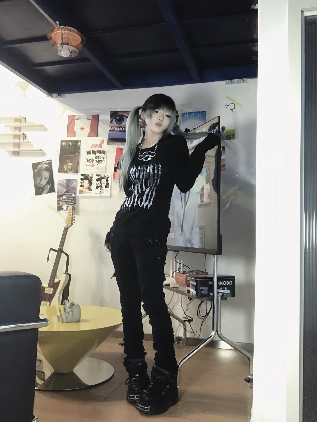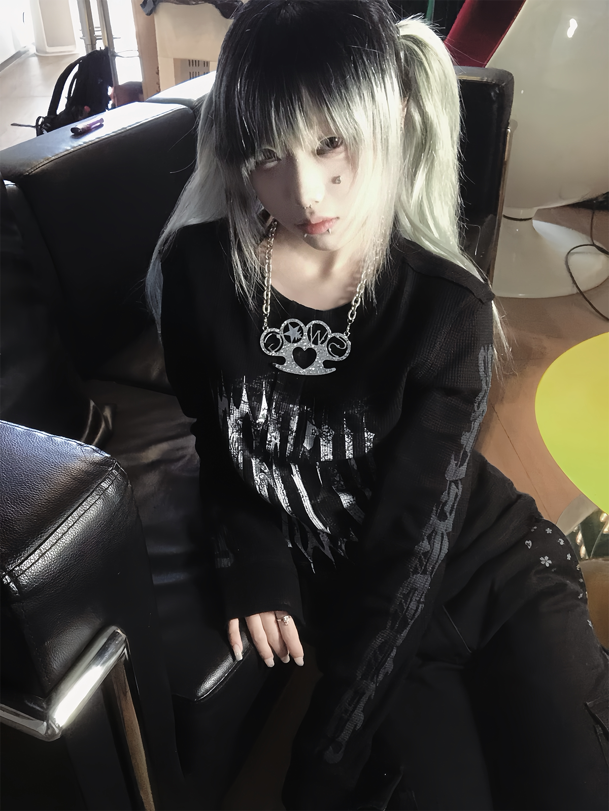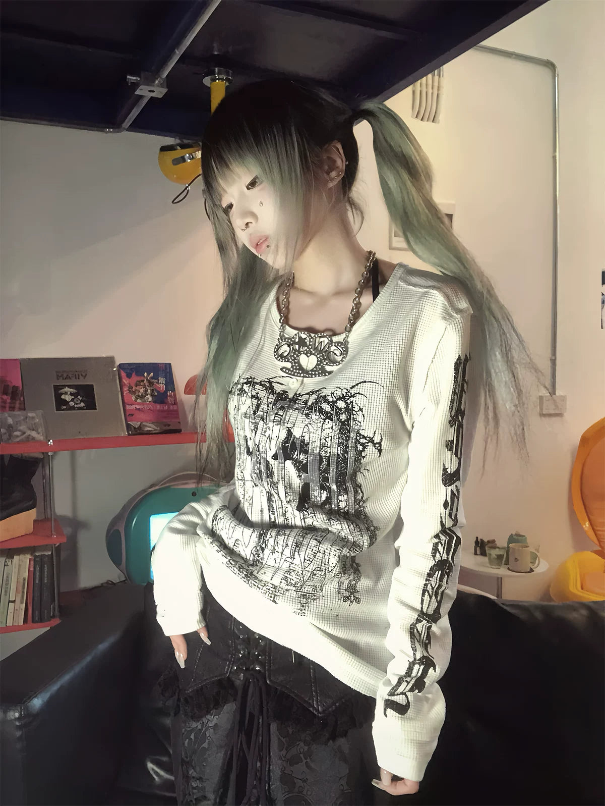 • Printed Design: Gothic bone graphic print, giving it a rebellious and edgy look.