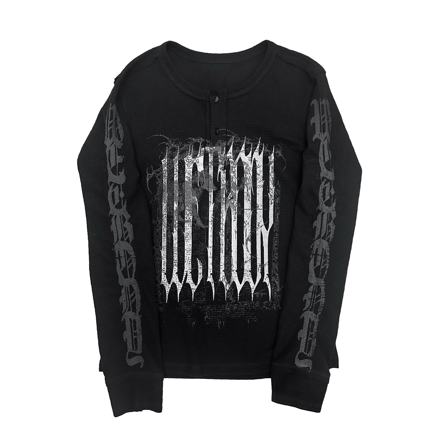 • Sub-culture T-shirt: Long sleeve T-shirt with a classic crewneck; features button detail at the collar for added style.