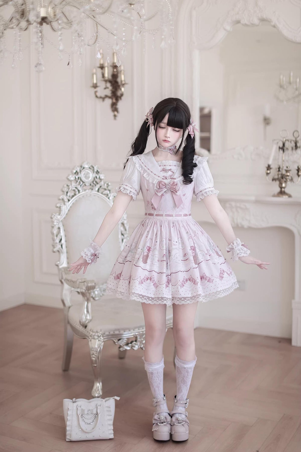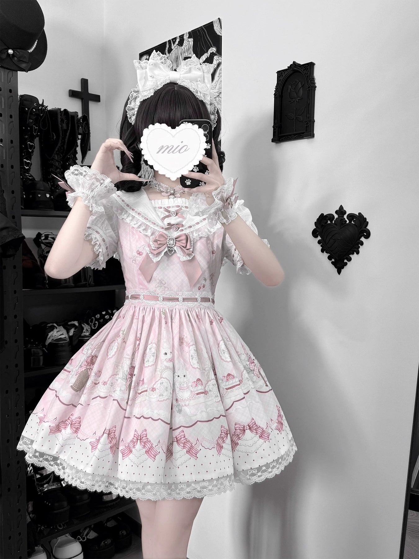 • The dress features adorable bunny and fresh strawberry dessert prints, with detachable bows and lace trimming, sweet and dreamy.