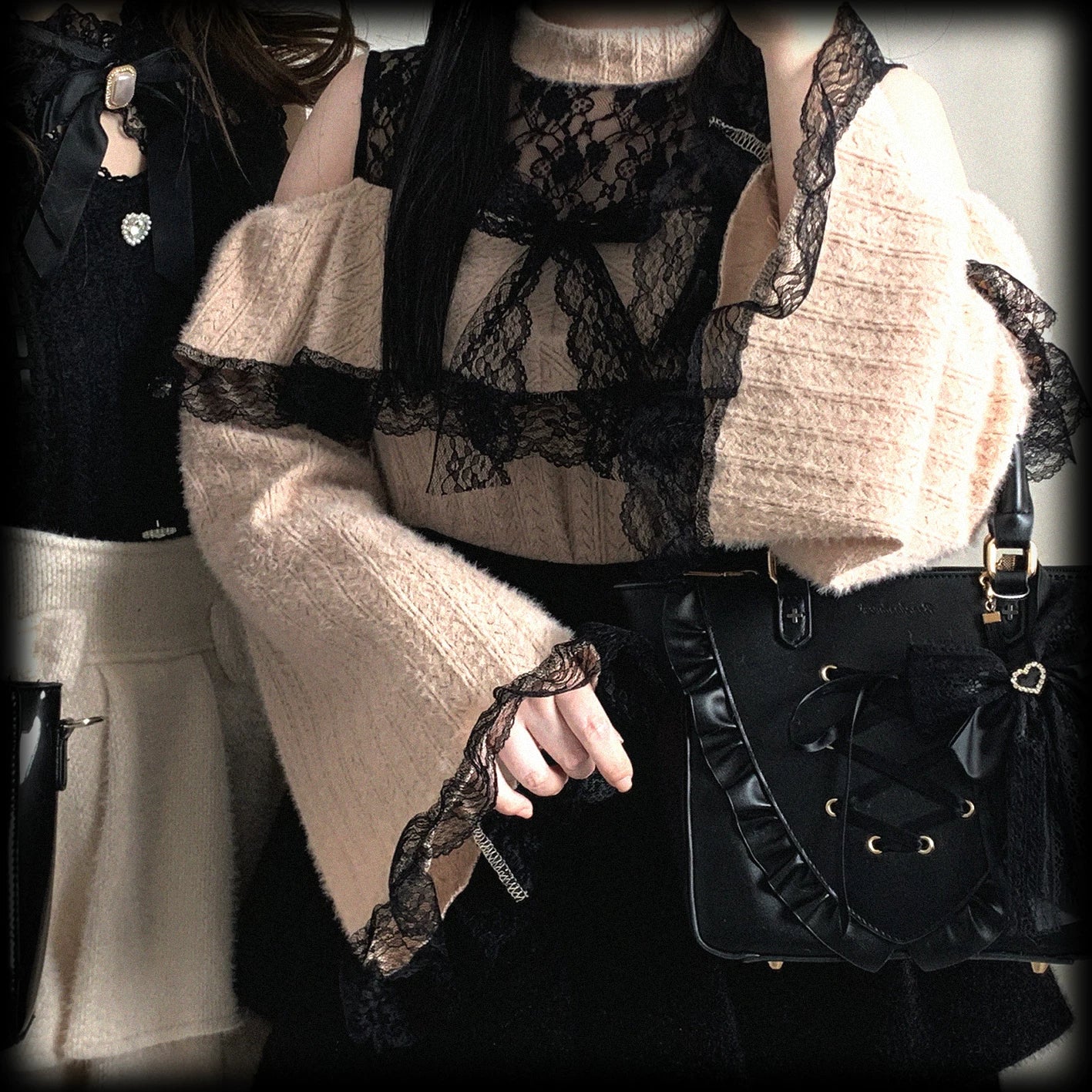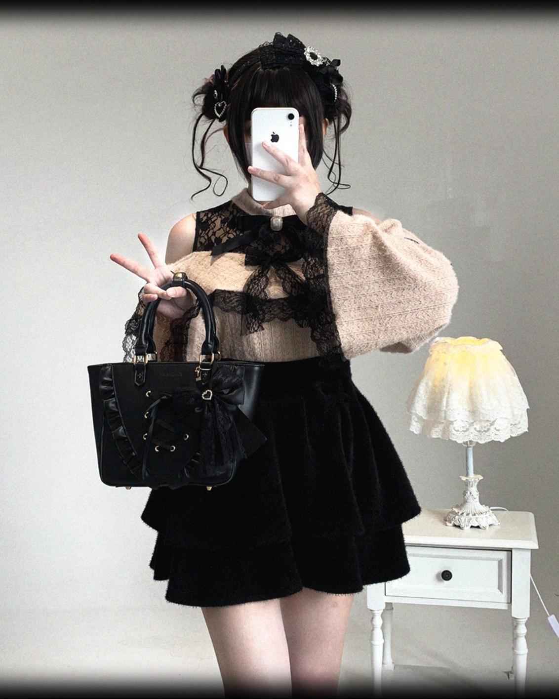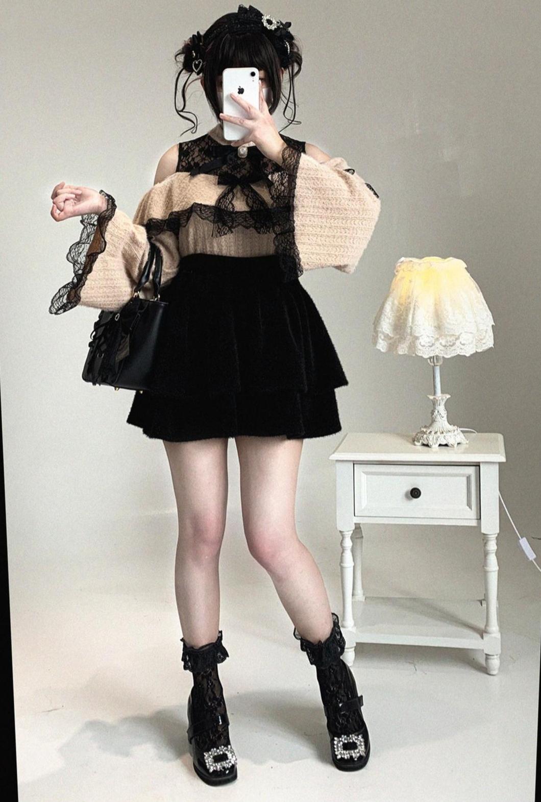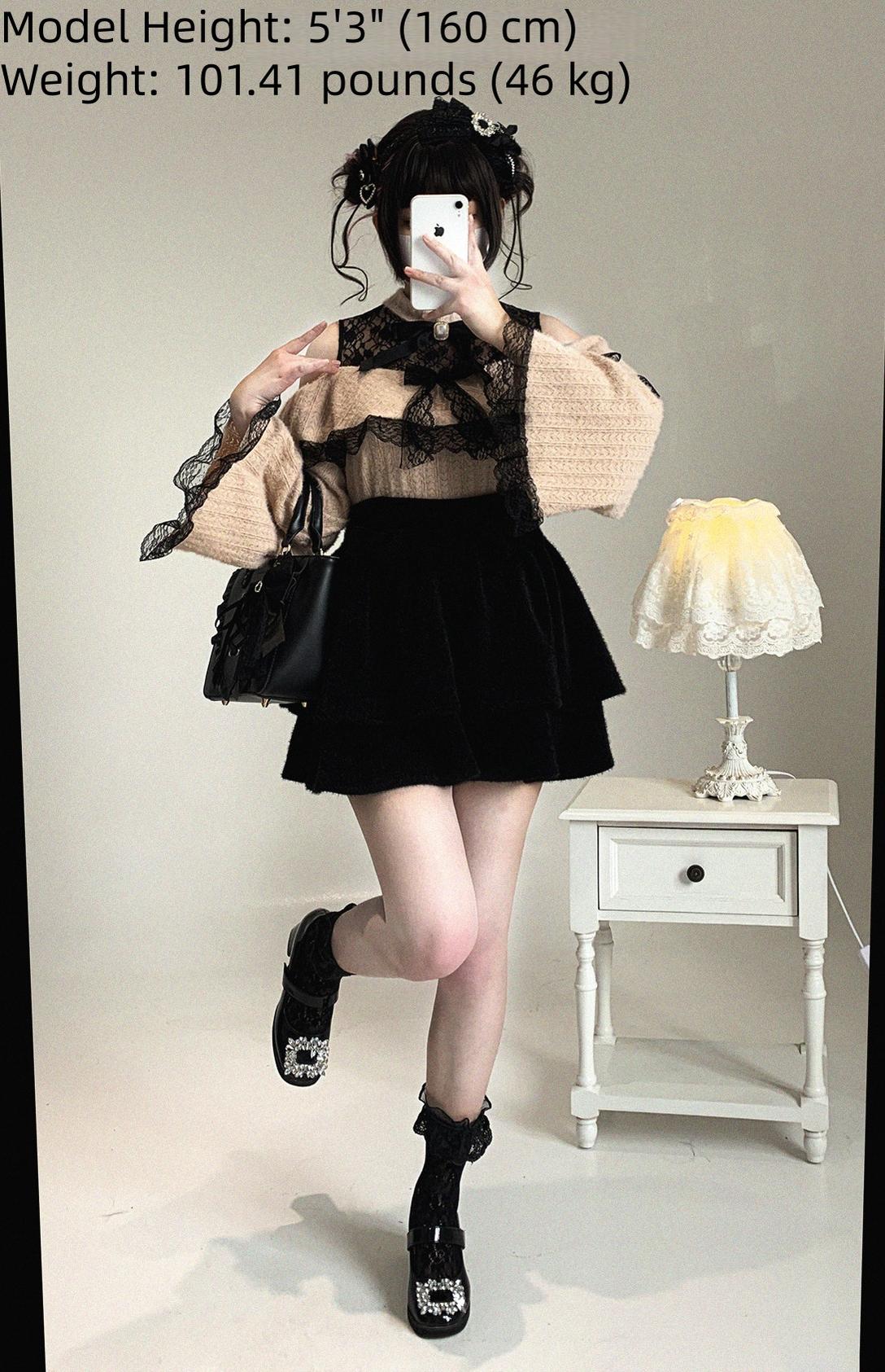 • Ryousangata Sweater: Soft plush fabric with lace trim, featuring a sexy open-shoulder design - perfect for dates and outings.