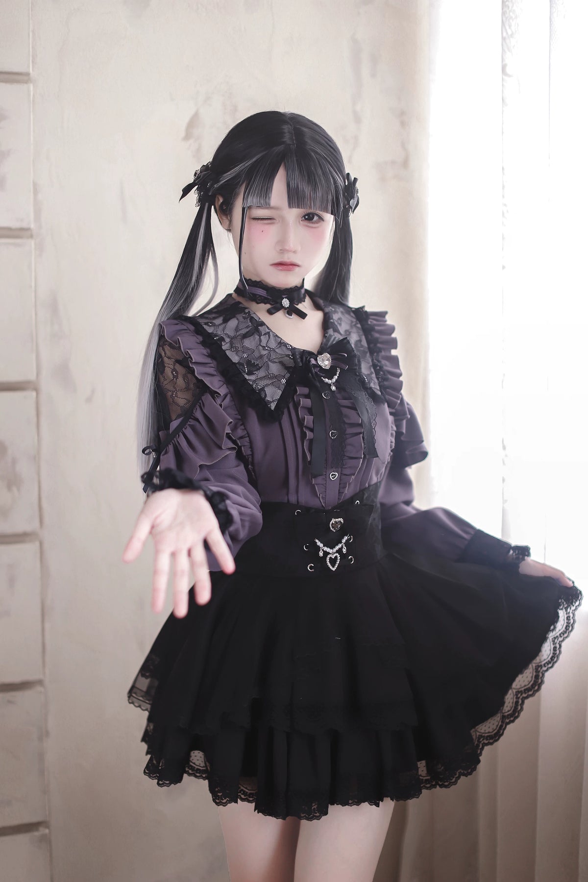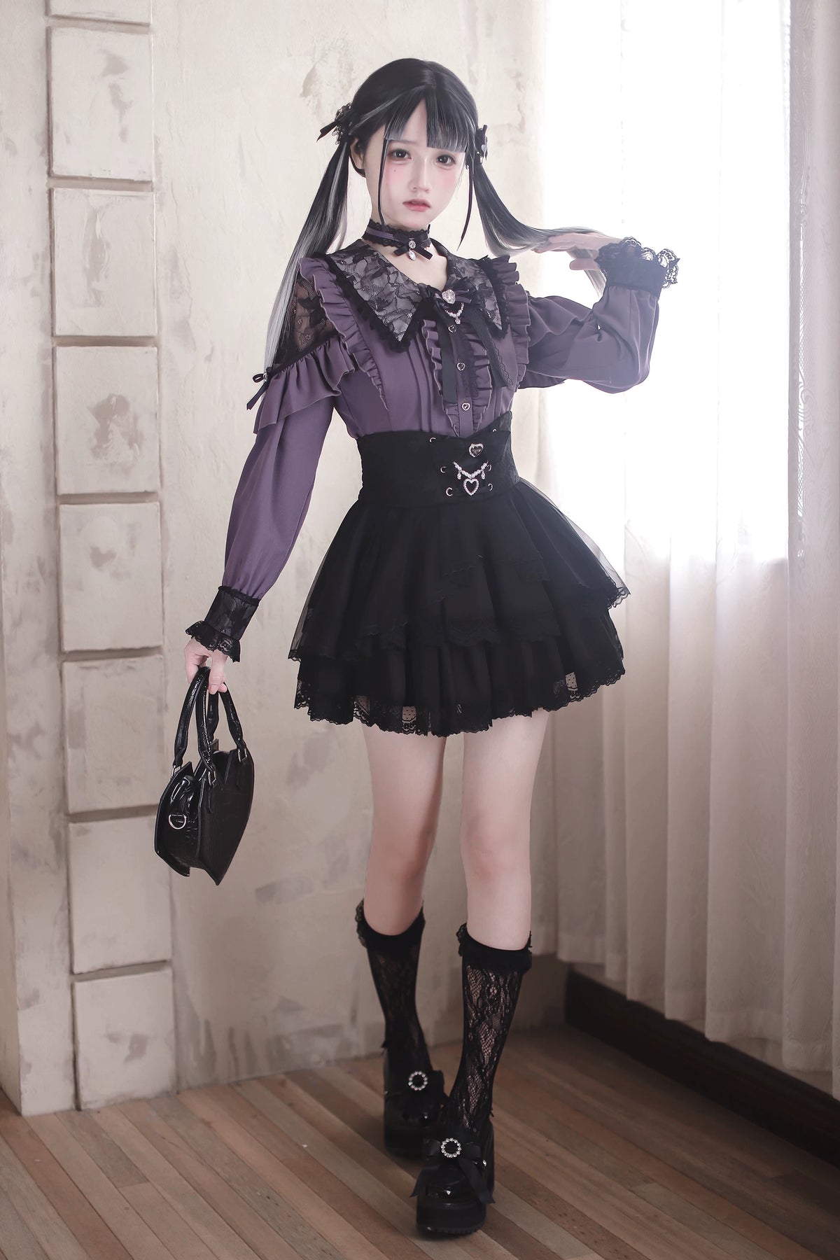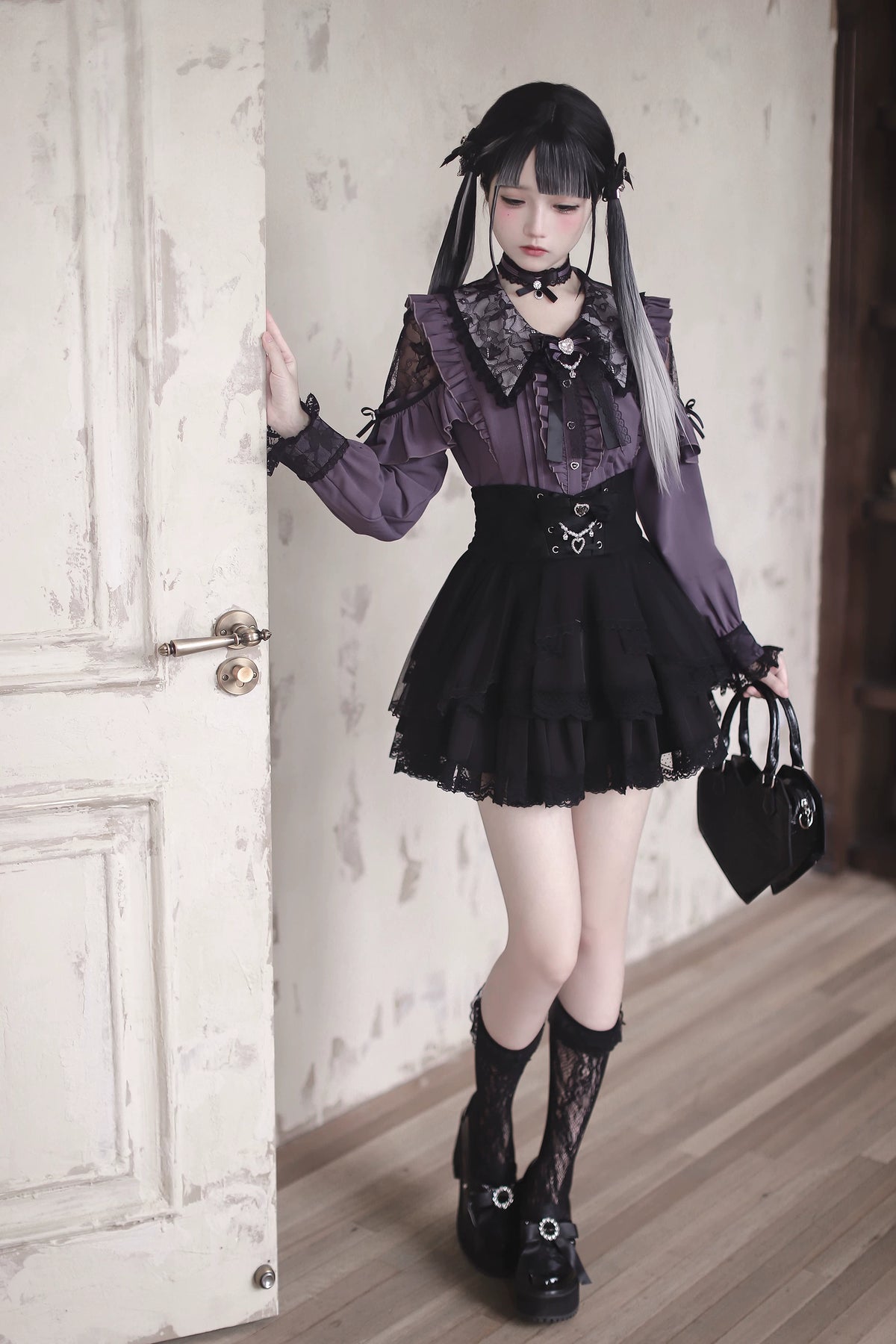 • Jirai Kei Skirt: Features a double-layered hem with lace trim, adding a sense of layering.