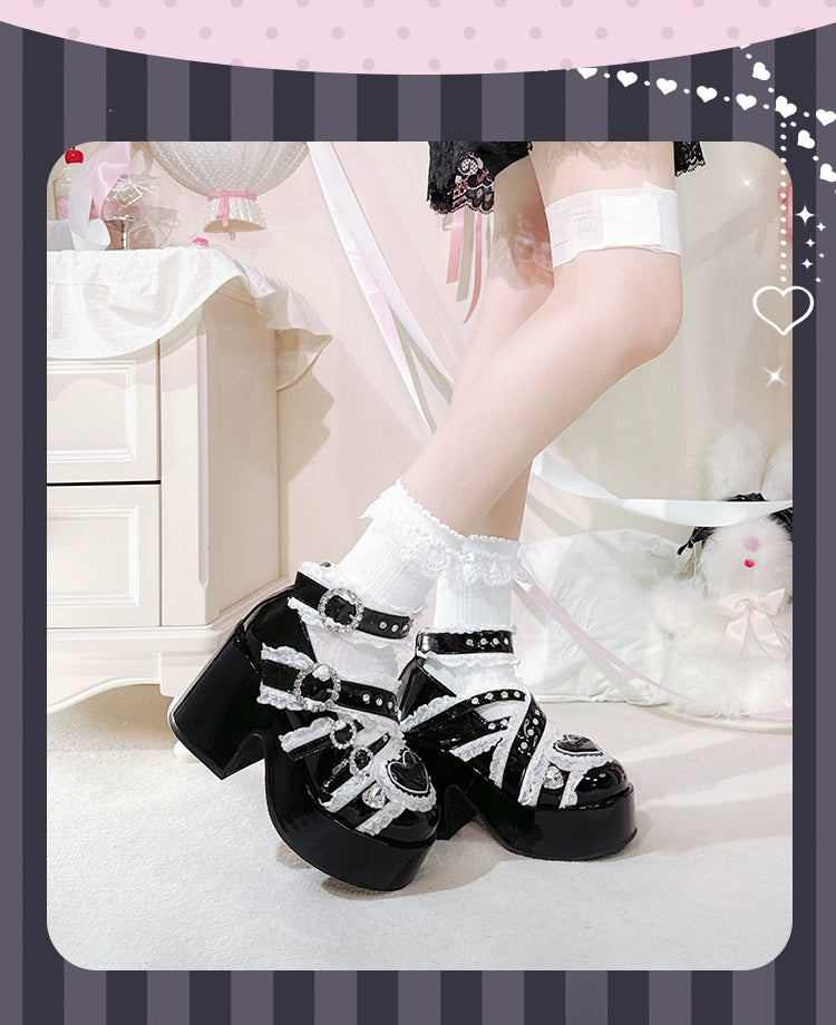Jirai Kei High-Heeled Platform Shoes, Ruffled Lace 43868:790808