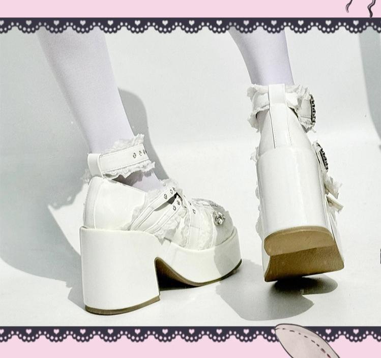 Jirai Kei High-Heeled Platform Shoes, Ruffled Lace (White / 35 36 37 38 39 40) 43868:790814