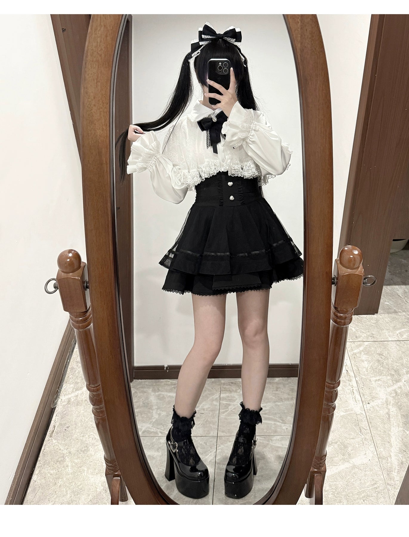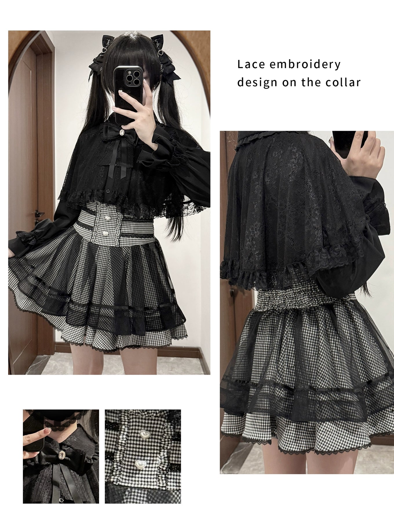 • Jirai Kei Outfit: Elegant lace cape blouse paired with high-waisted skirt, slimming and heightening, perfect for daily dates and occasions.