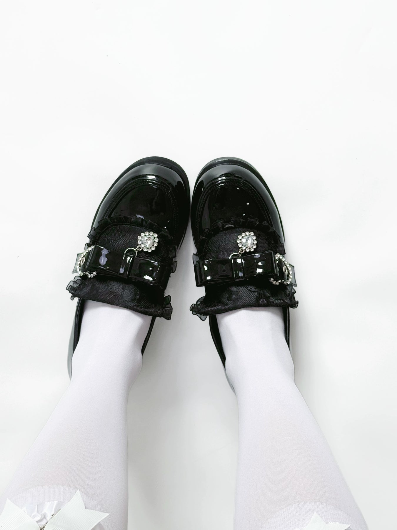 Jirai Kei Low-Heel Loafer Shoes, Rhinestones & Bow 43944:790326