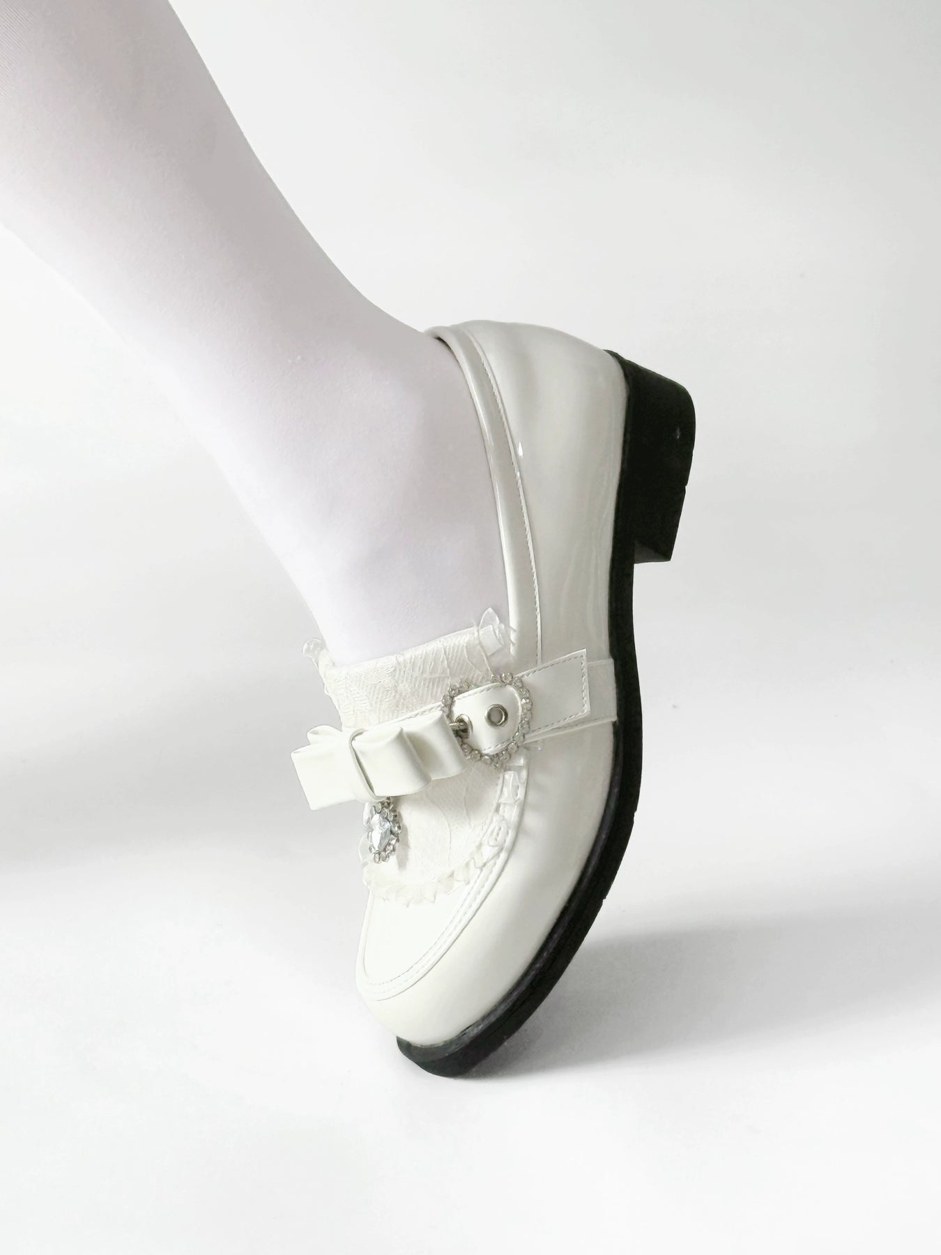 Jirai Kei Low-Heel Loafer Shoes, Rhinestones & Bow 43944:790323