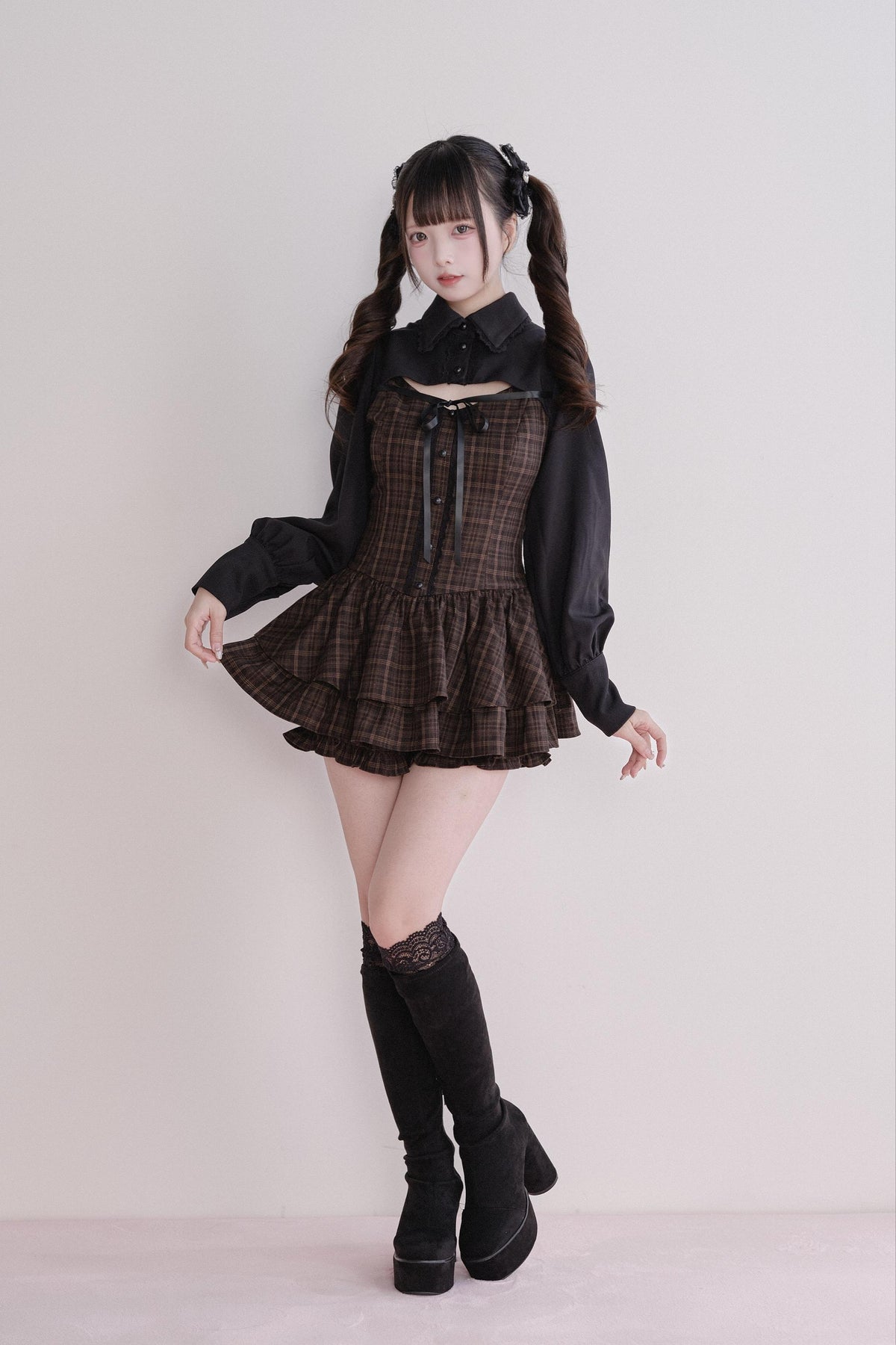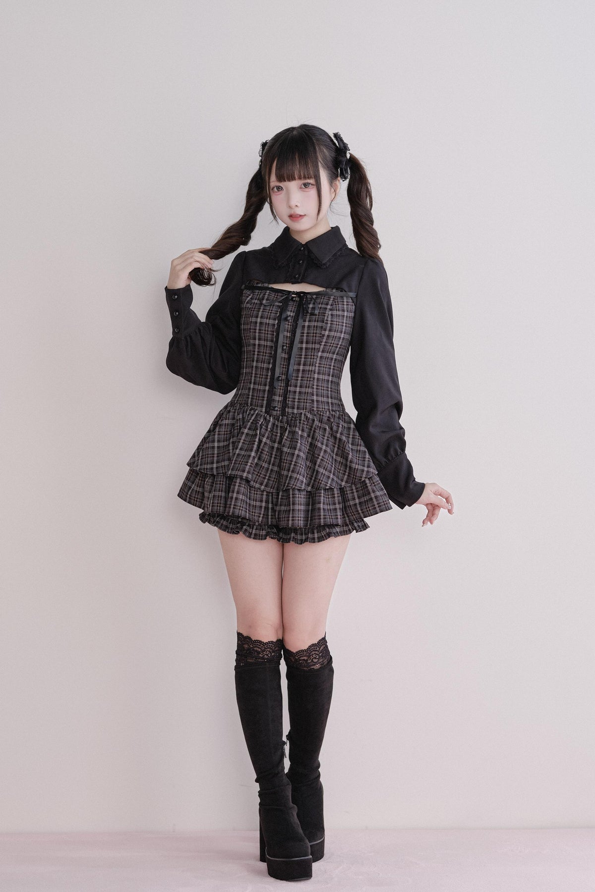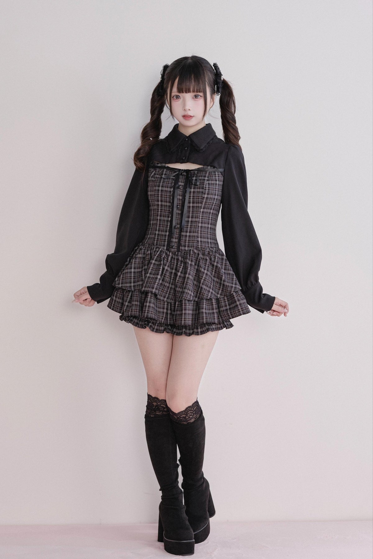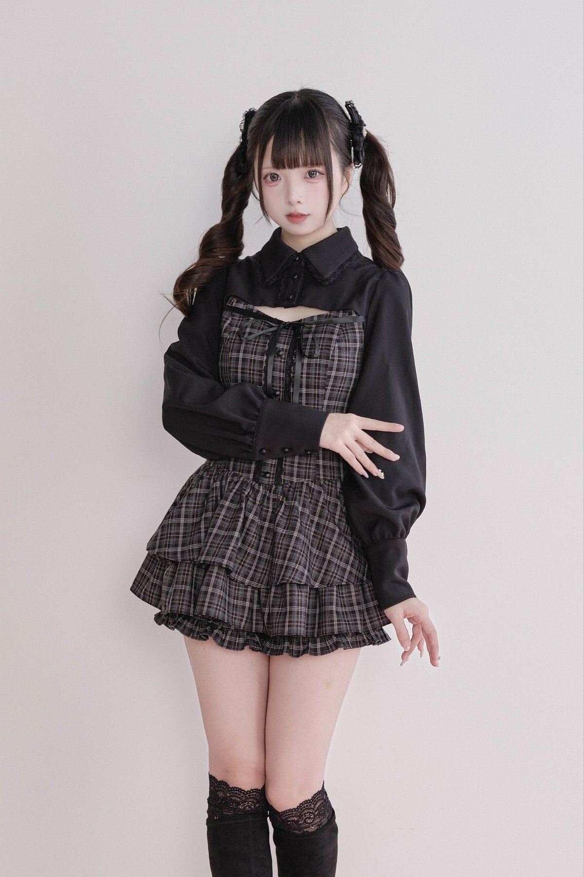 • Jirai Kei Outfit: Classic plaid meets a stylish faux two-piece design for an effortlessly elegant look.