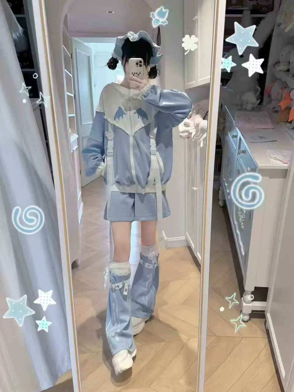 • Tenshi Kaiwai Outfit: Perfect mix of light blue and white, with angel wing designs, creates a pure and holy feeling.