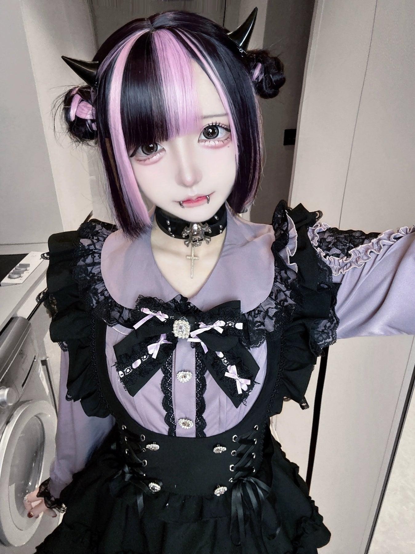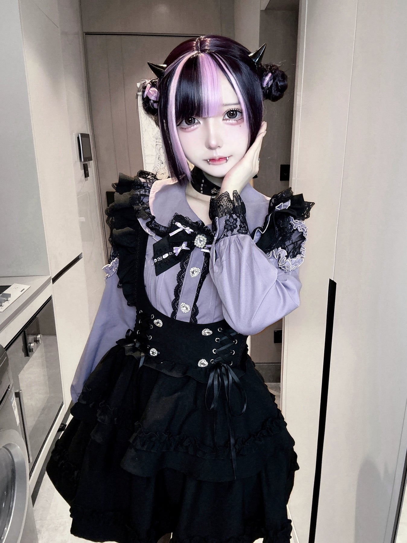 Jirai Kei Long Sleeve Blouse, Black Suspender Skirt 44031:803510