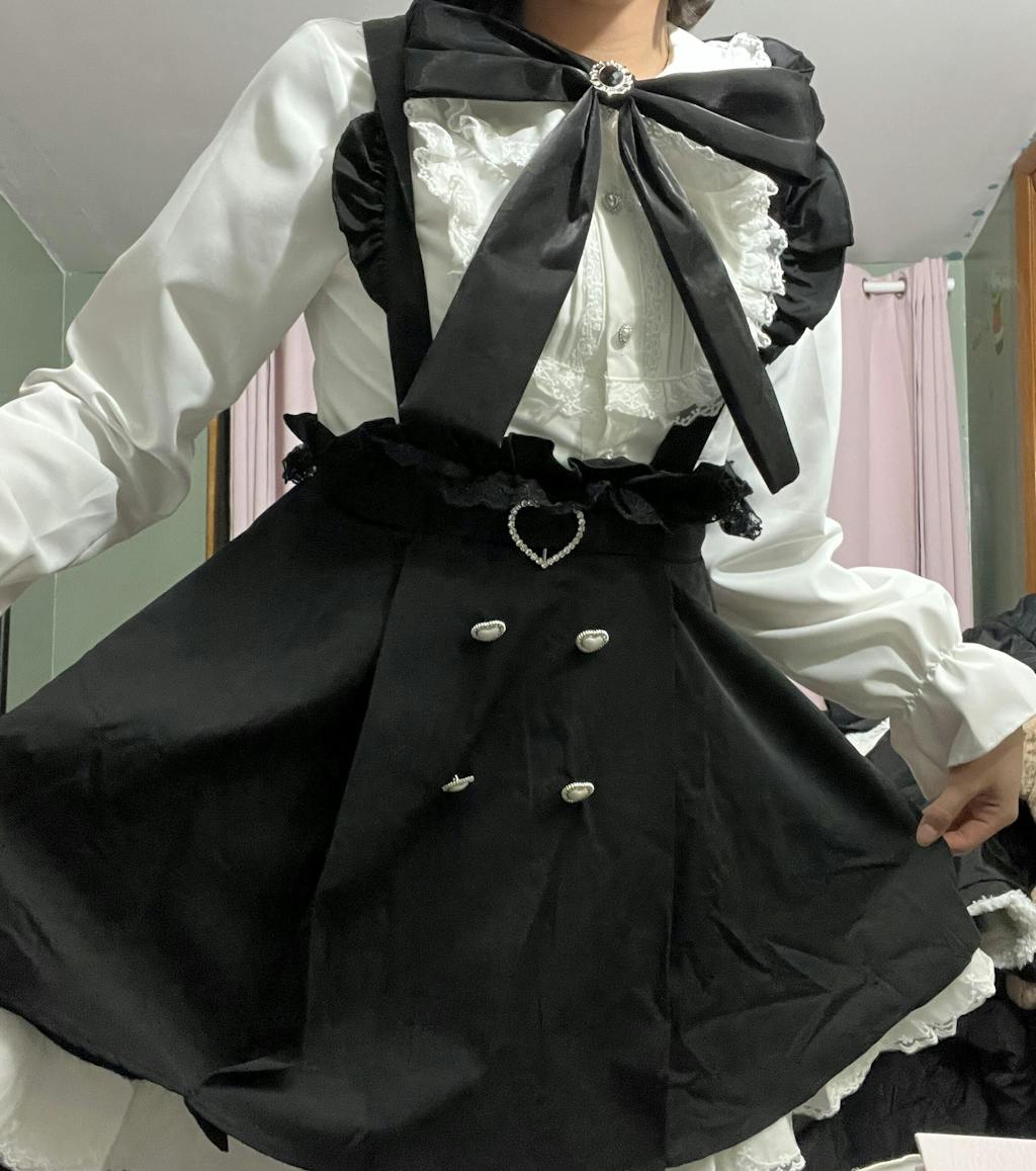 - Jirai Kei Outfit: Timeless black + white combo, perfect for everyday style.