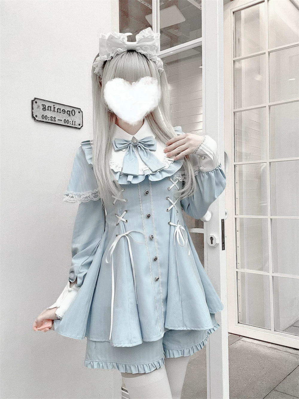Jirai Kei Cape Design Dress and Pocketed Shorts Set