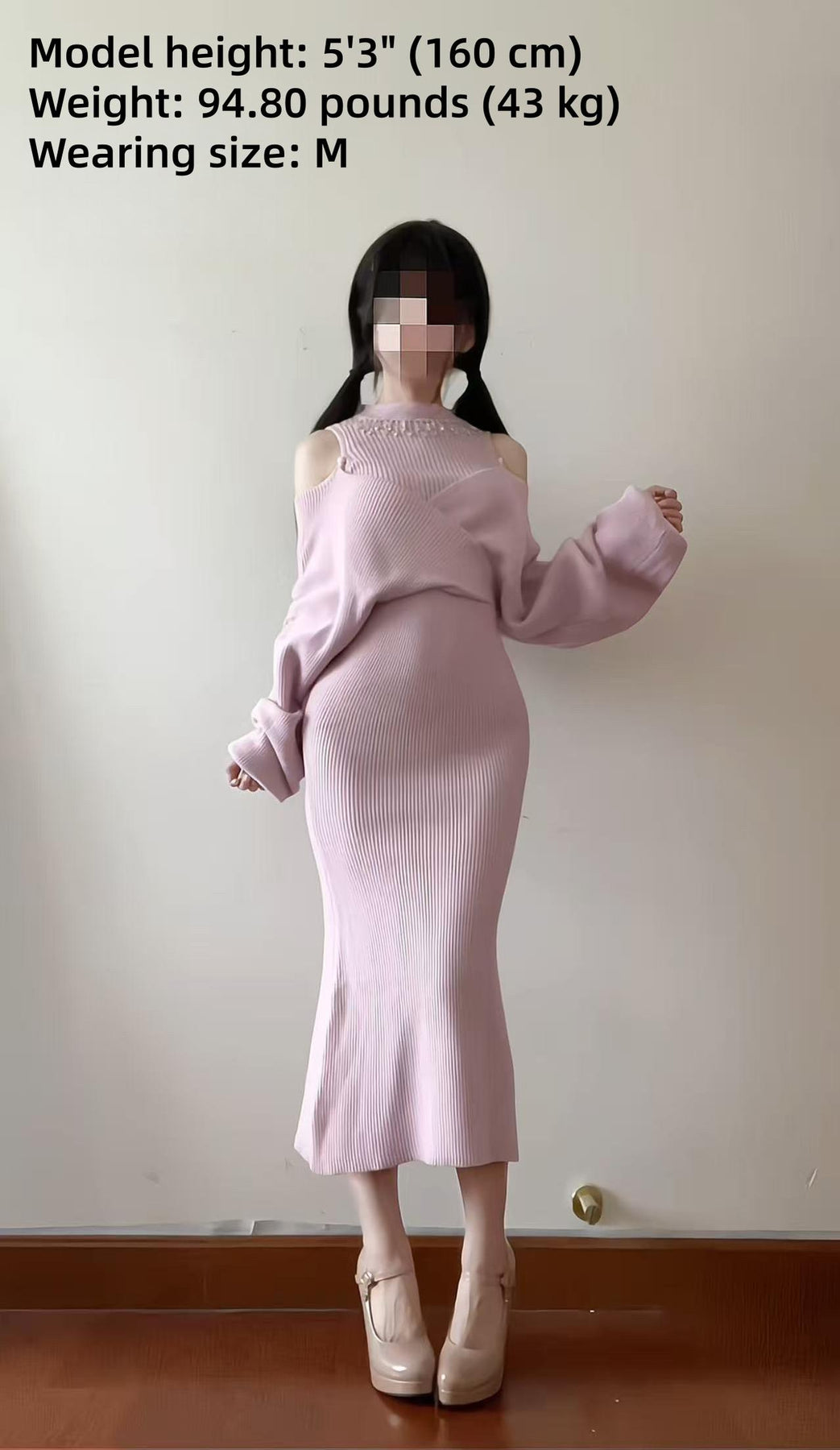 Seiso Kei Knitted Bodycon Dress, Open Shoulder