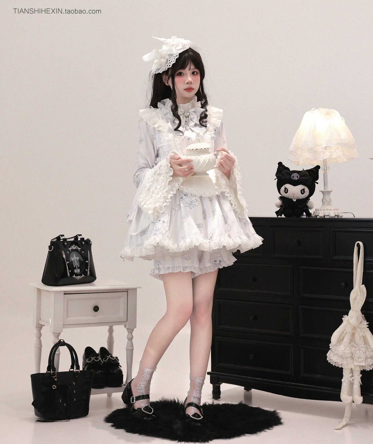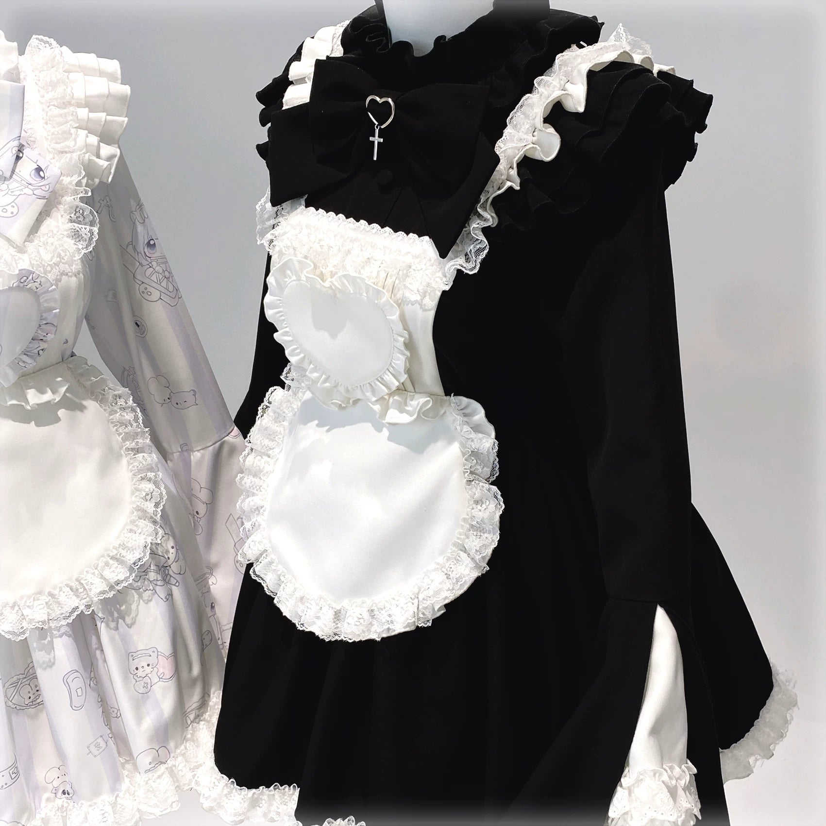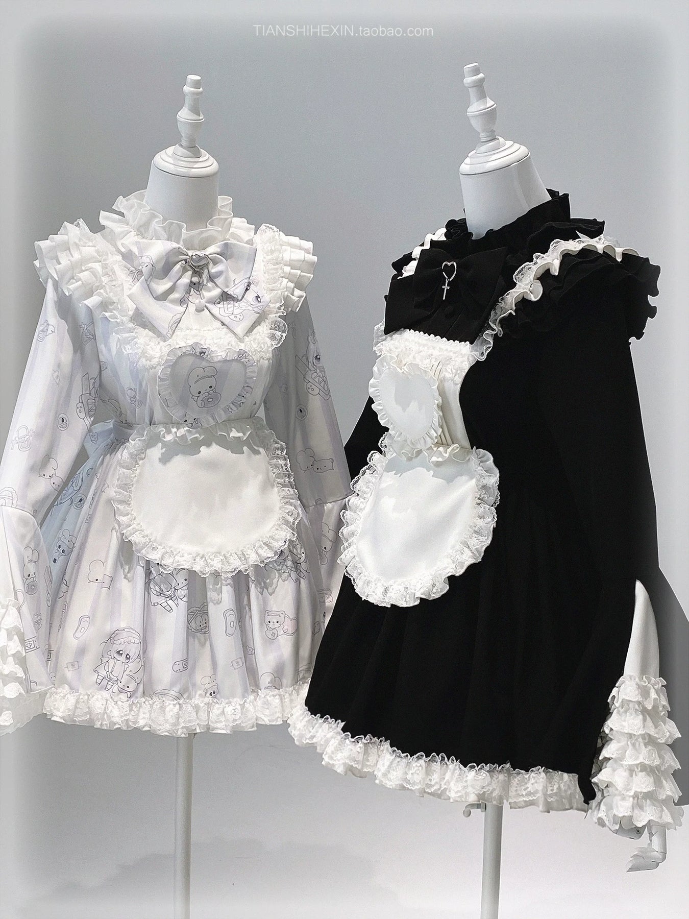 Maid-inspired Dress: High-waist fit with small princess sleeves, featuring sweet and cute printed patterns or classic black-and-white simplicity.