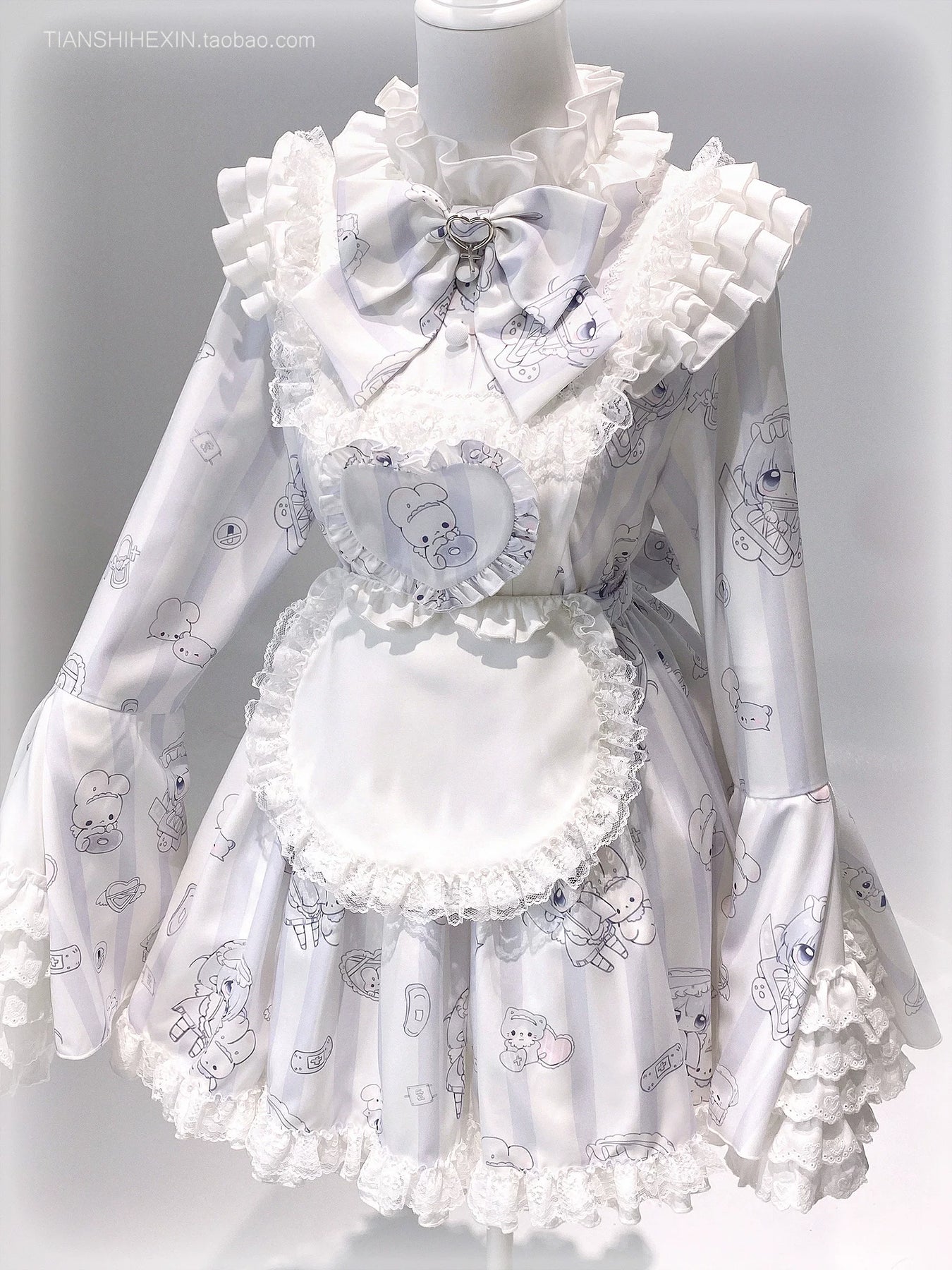 Include: The price includes a dress, a pair of shorts, an apron, a bowtie, and a detachable heart-shaped decoration.