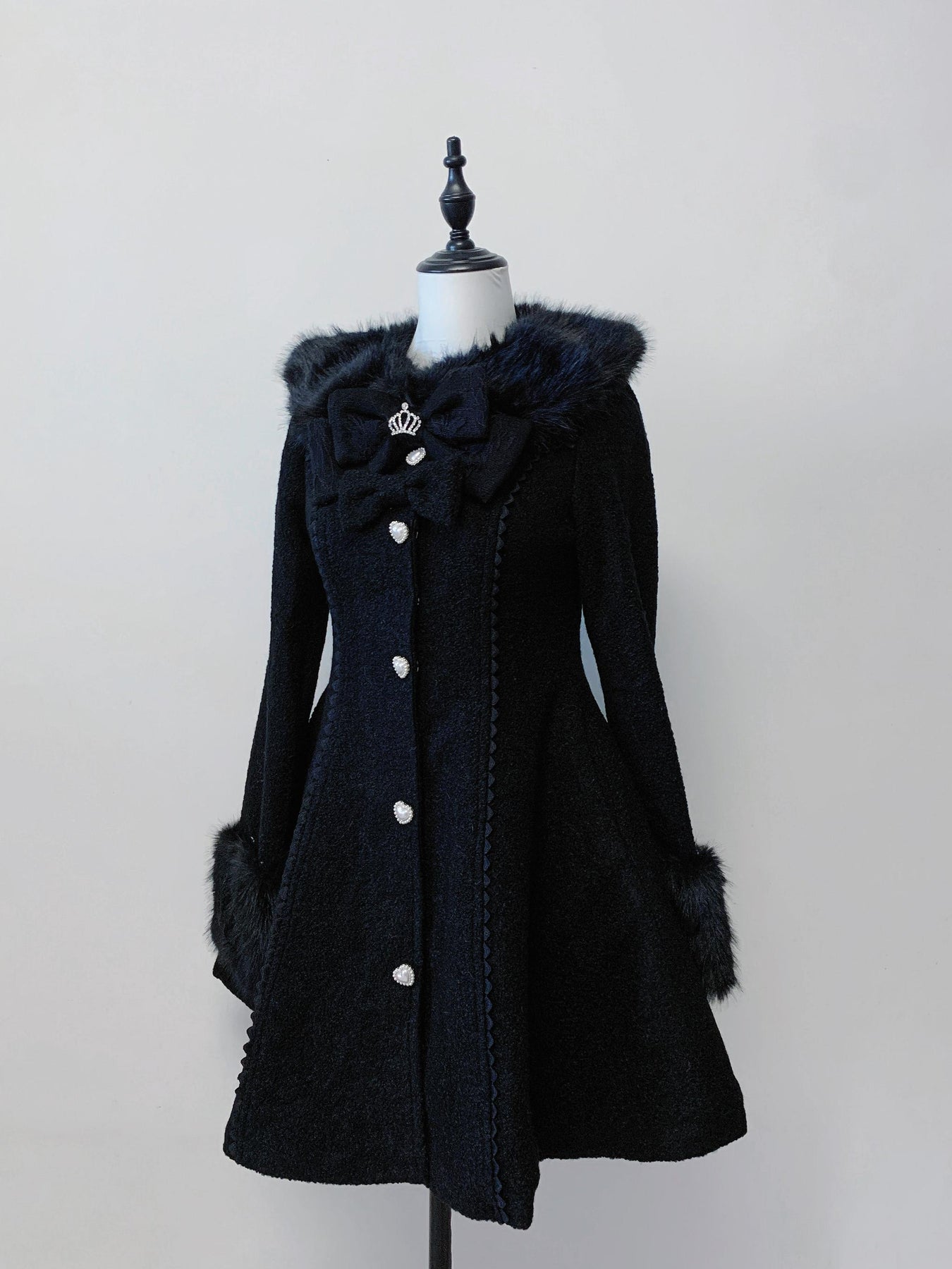 Include: The price includes the coat + two chest bows + detachable faux fur only.