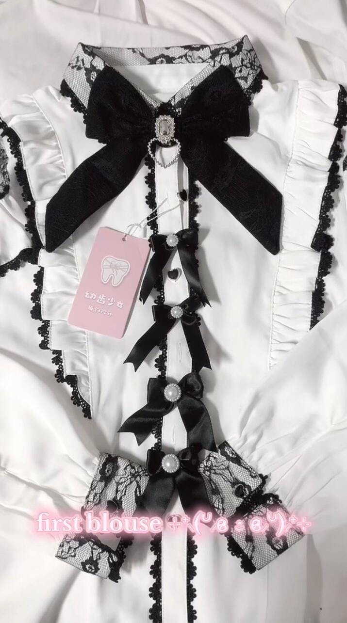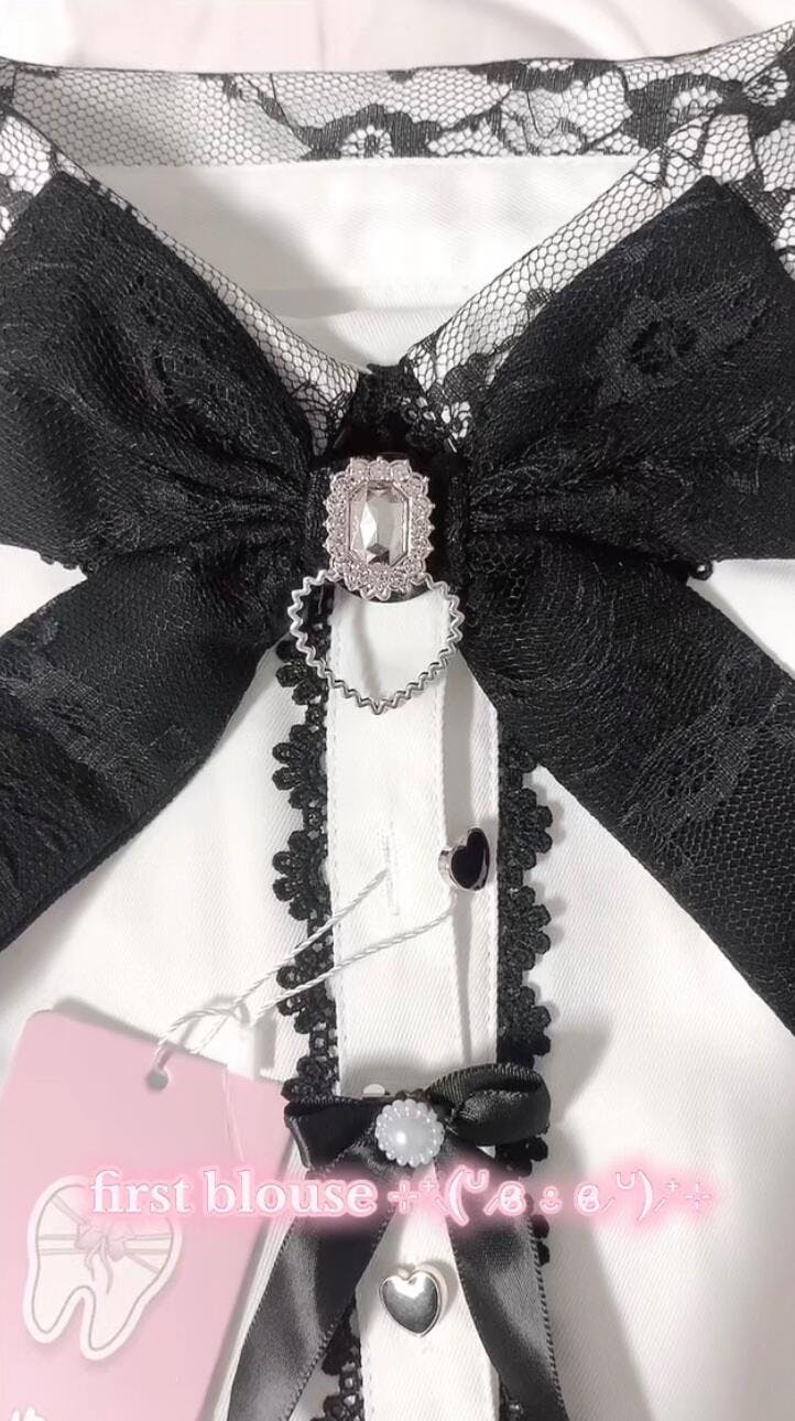 this blouse was super cute and i loved the black lace on the shoulders ☺️ although the gem on the bow did come off when I tried to detach it from the blouse 😅