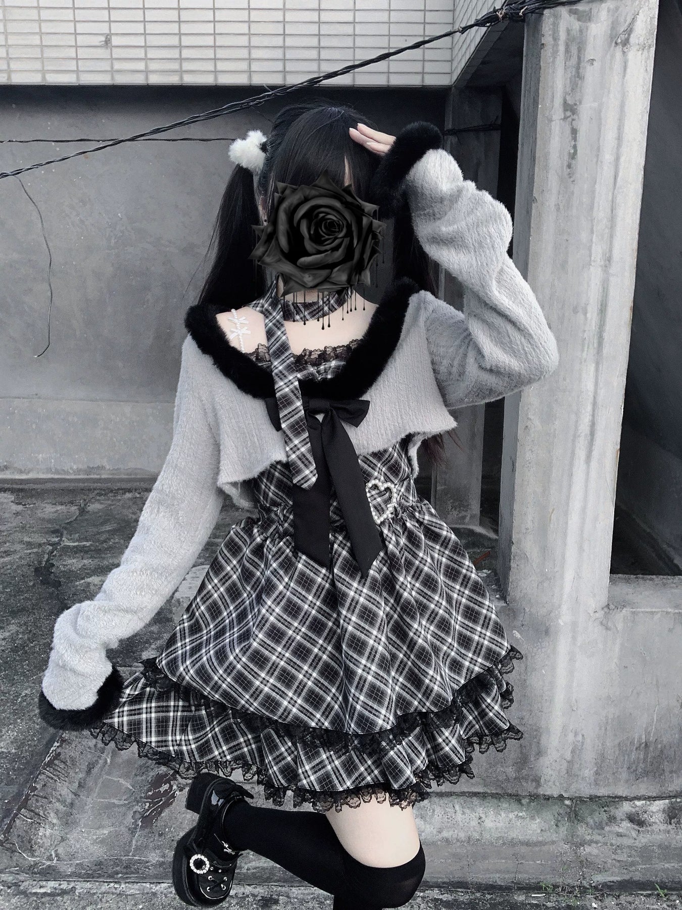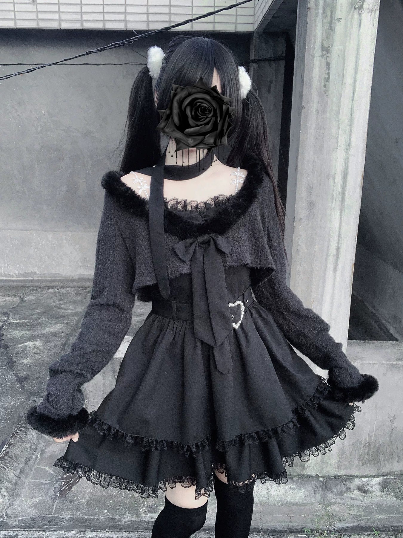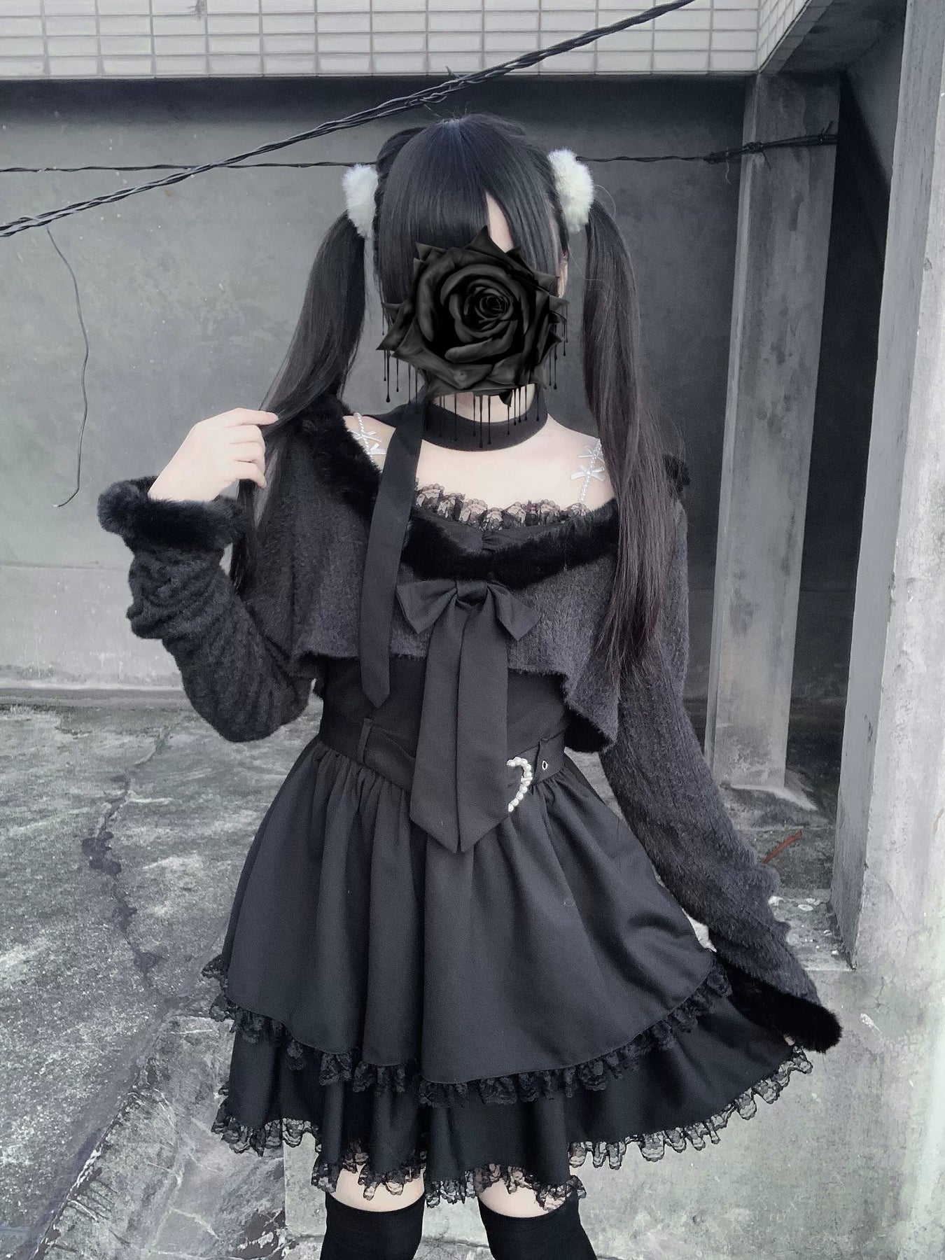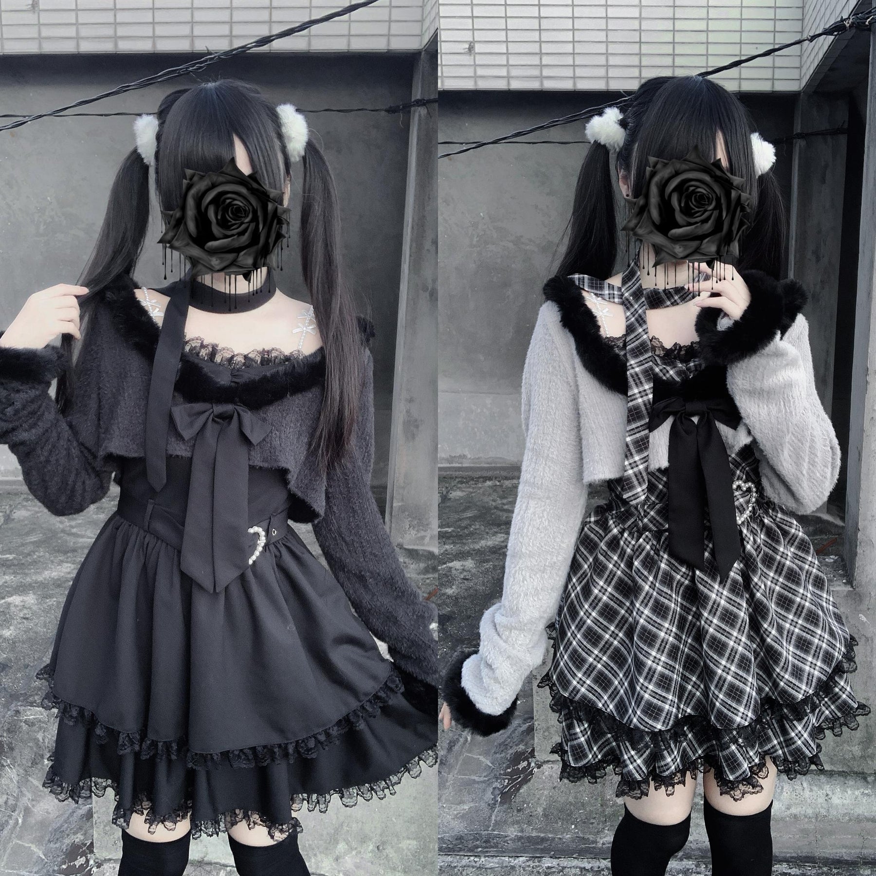 • Jirai Kei Dress: Available in black and gray, with classic ruffle lace, to create a girly style.