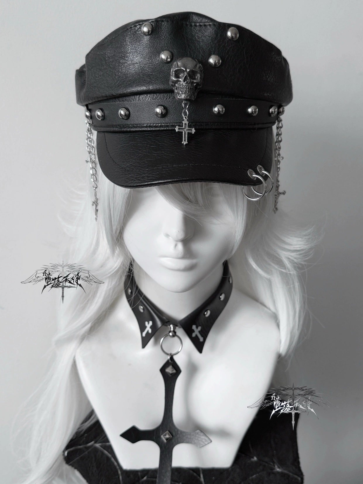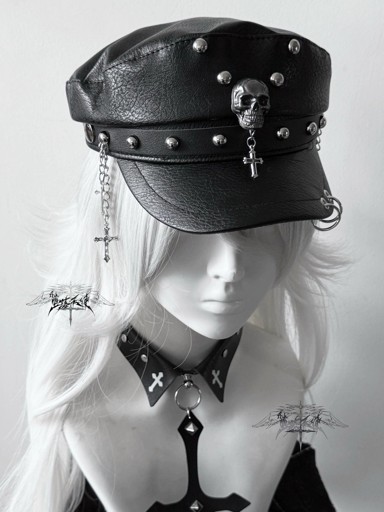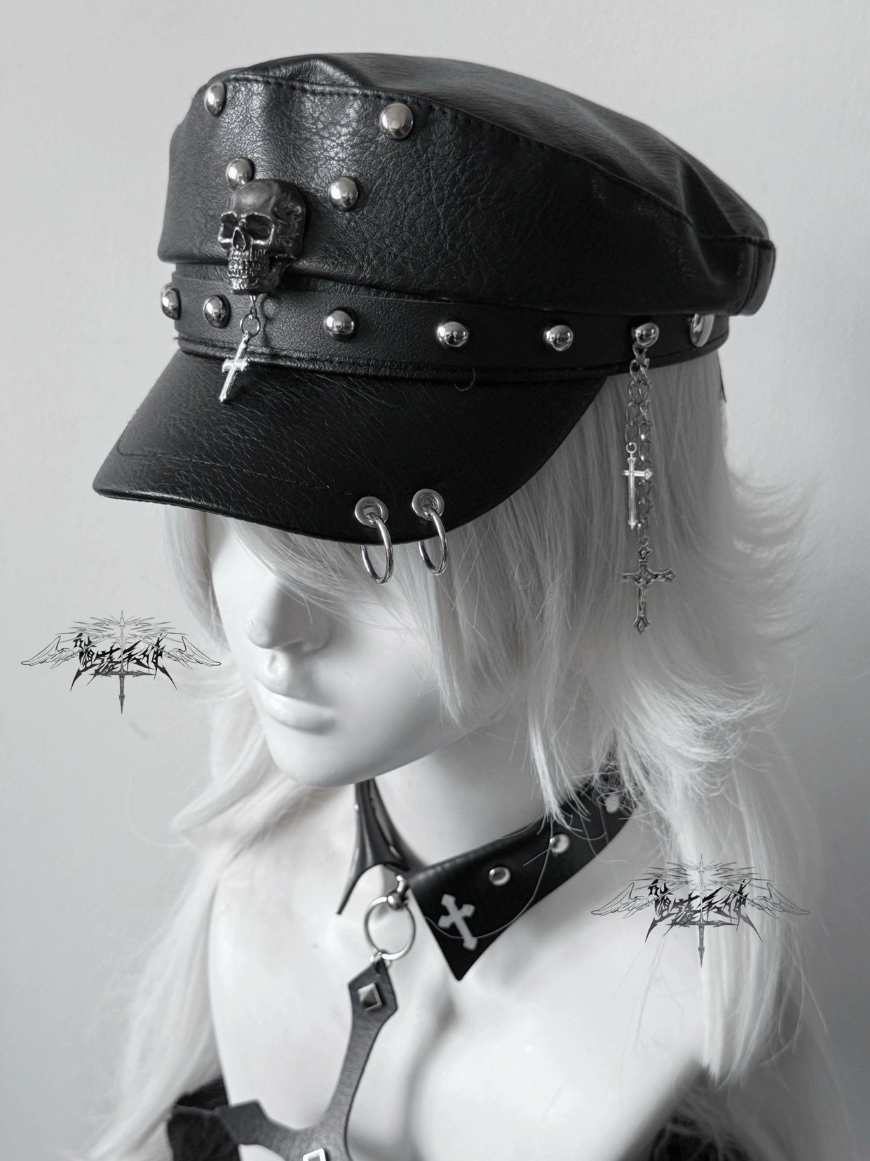 Punk Rivet Cap, Metal Cross & Skull Accents