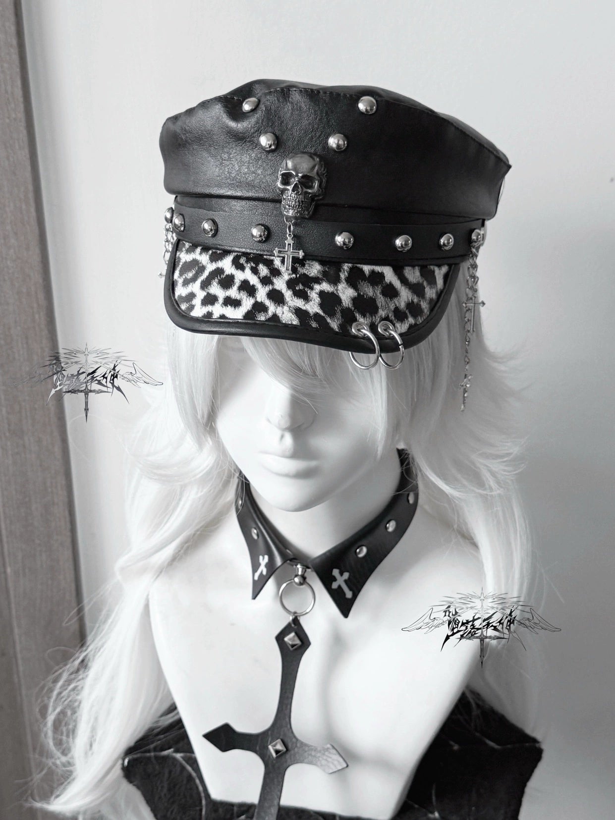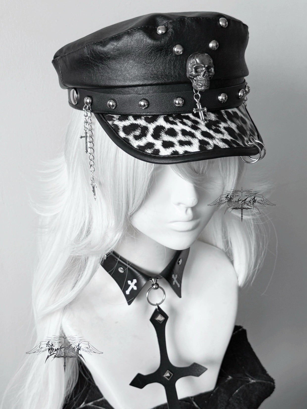 • Punk Cap: Features a flat-top baseball cap style, with leopard print or solid black brim options.
