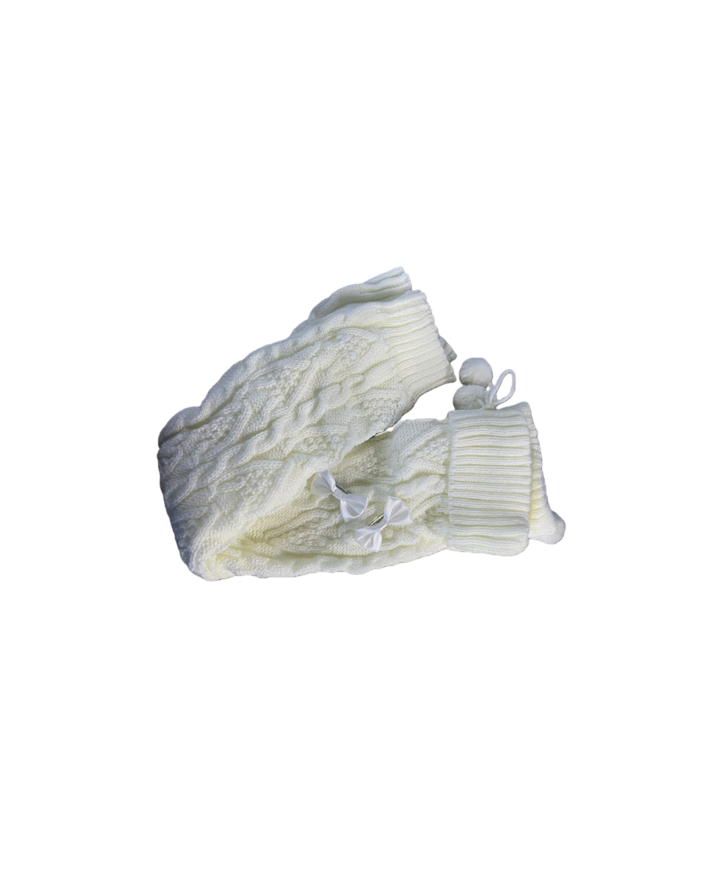 Knitted Winter Leg Warmers, Ribbon Bow and Pom-Poms