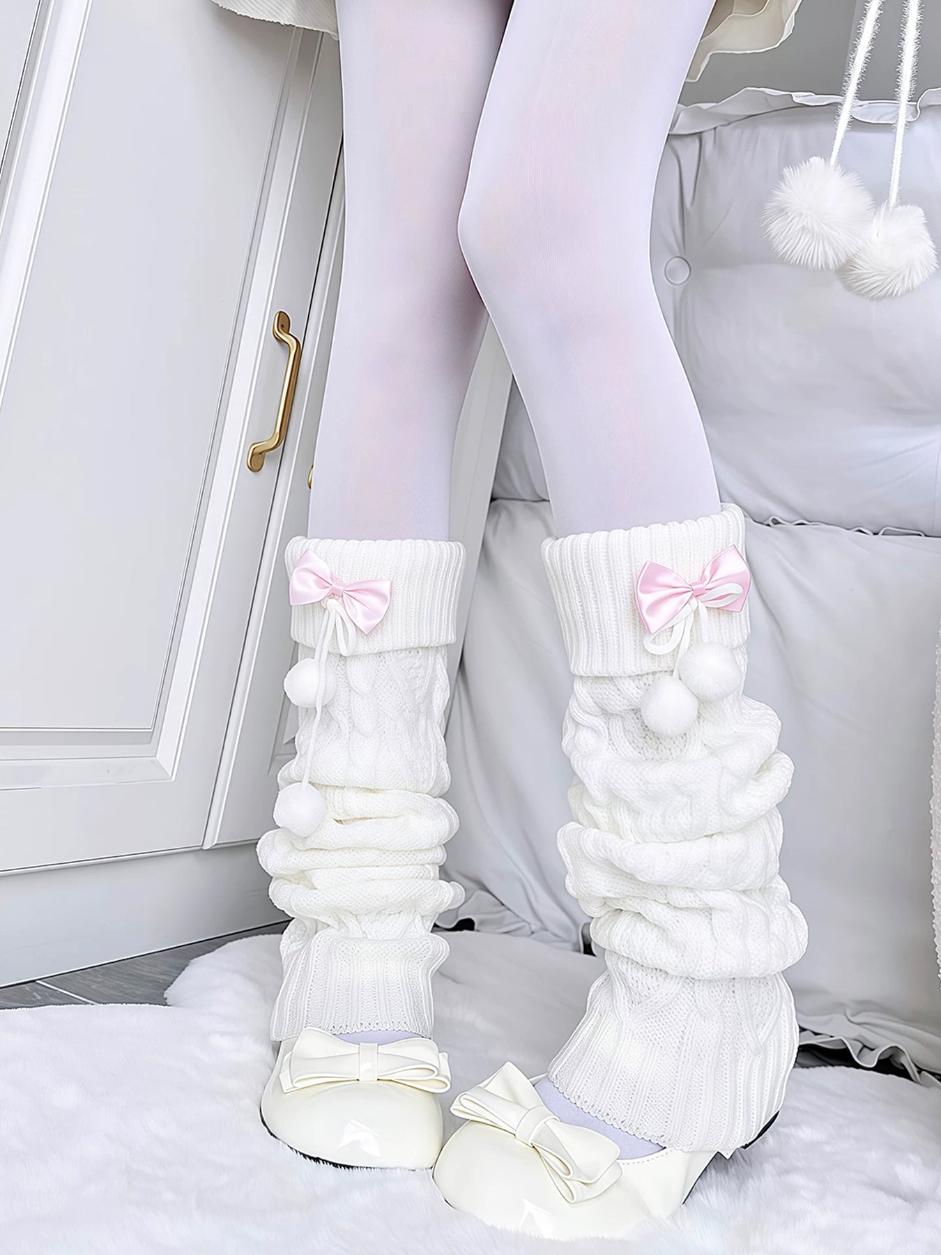 - Must-have for Japanese-style fashion: Knit leg warmers with cute ribbon bows and fluffy pom-poms, ideal for winter wear.