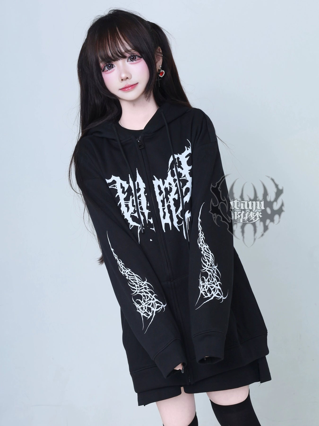 - Subculture Hooded Coat: Classic, versatile black design, featuring rebellious dark prints that add highlights to this style.