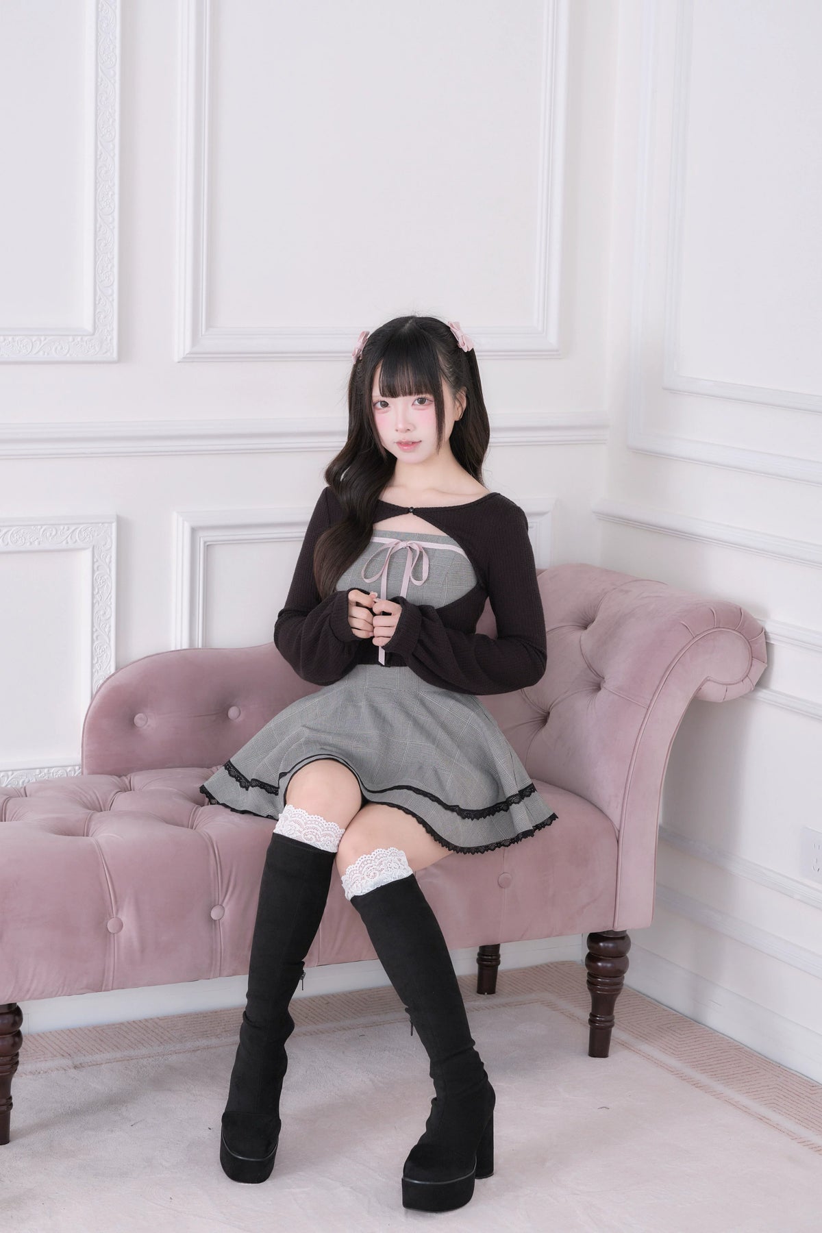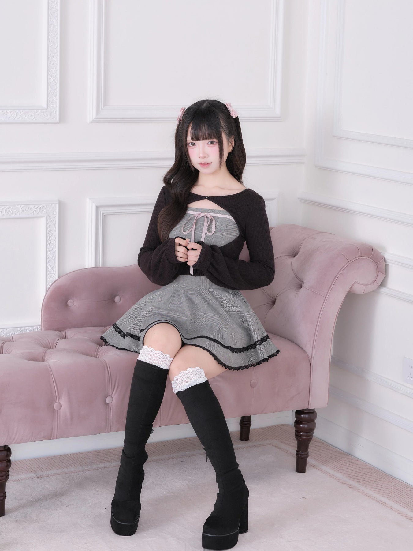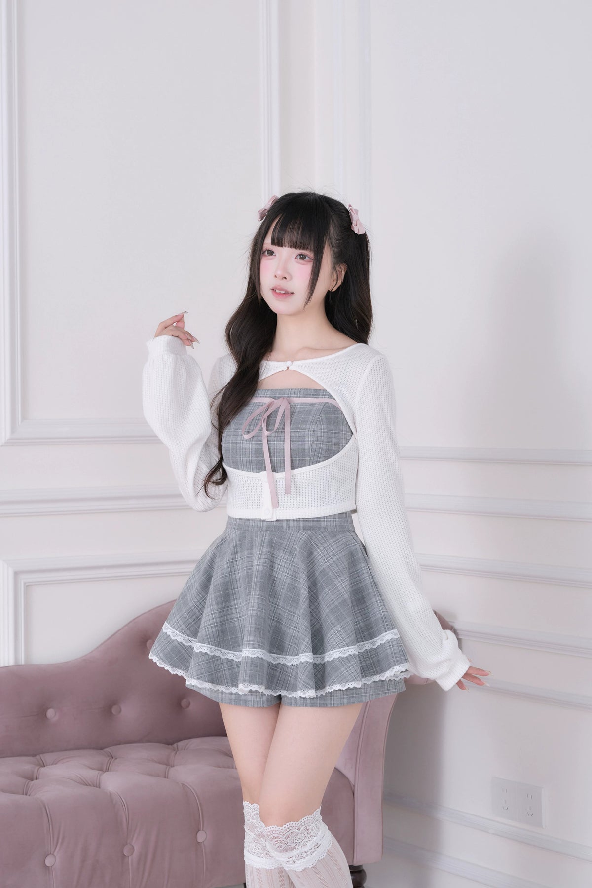 • Ryousangata Outfit: Classic plaid meets lace trim for an effortlessly sweet vibe.