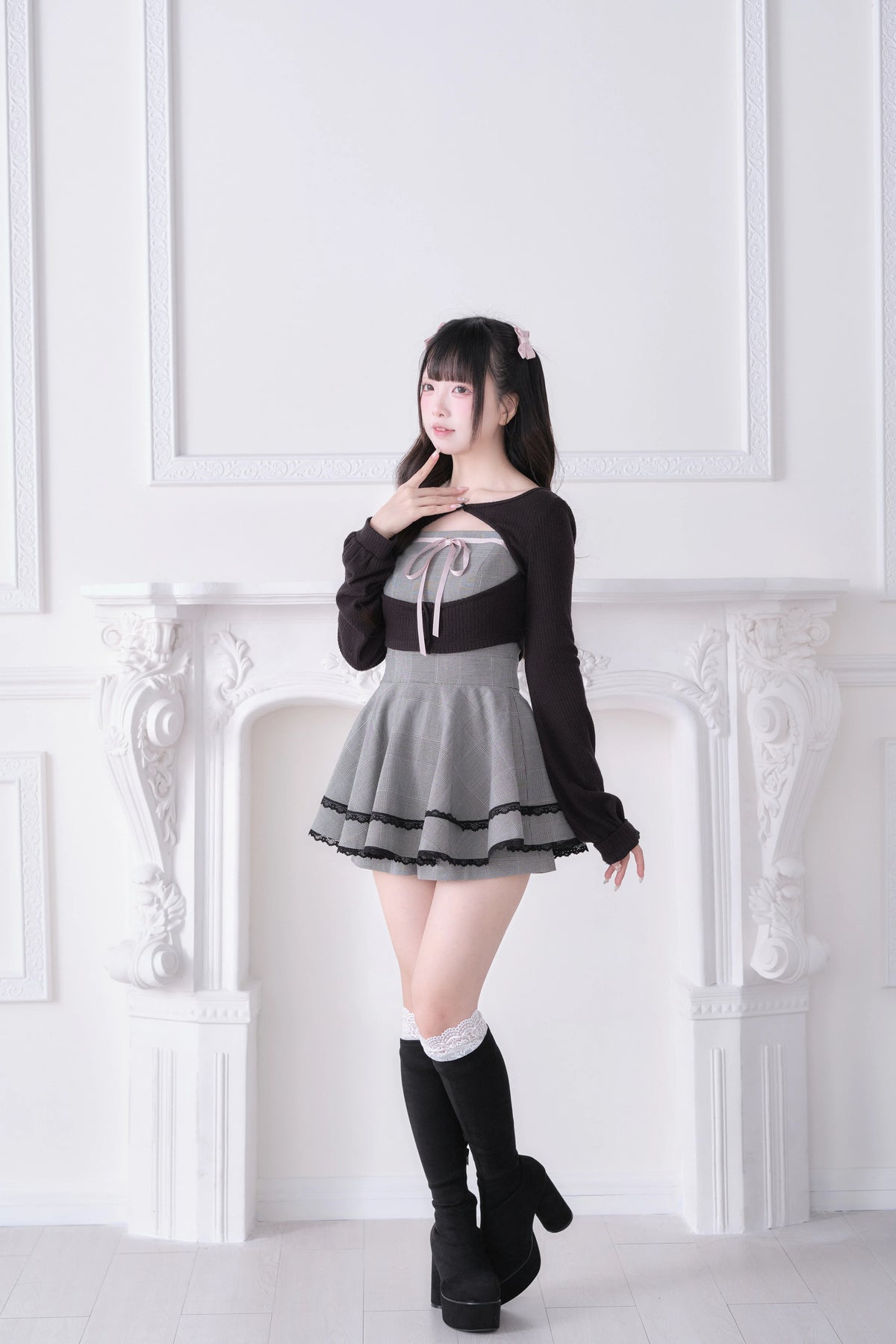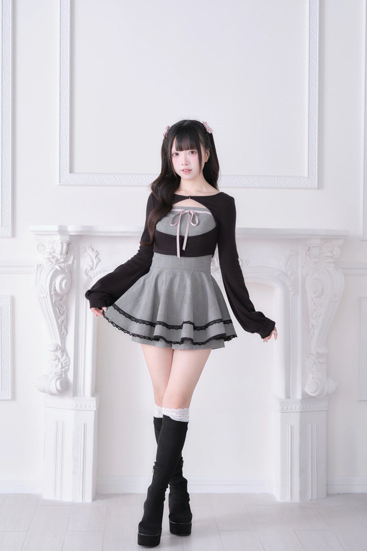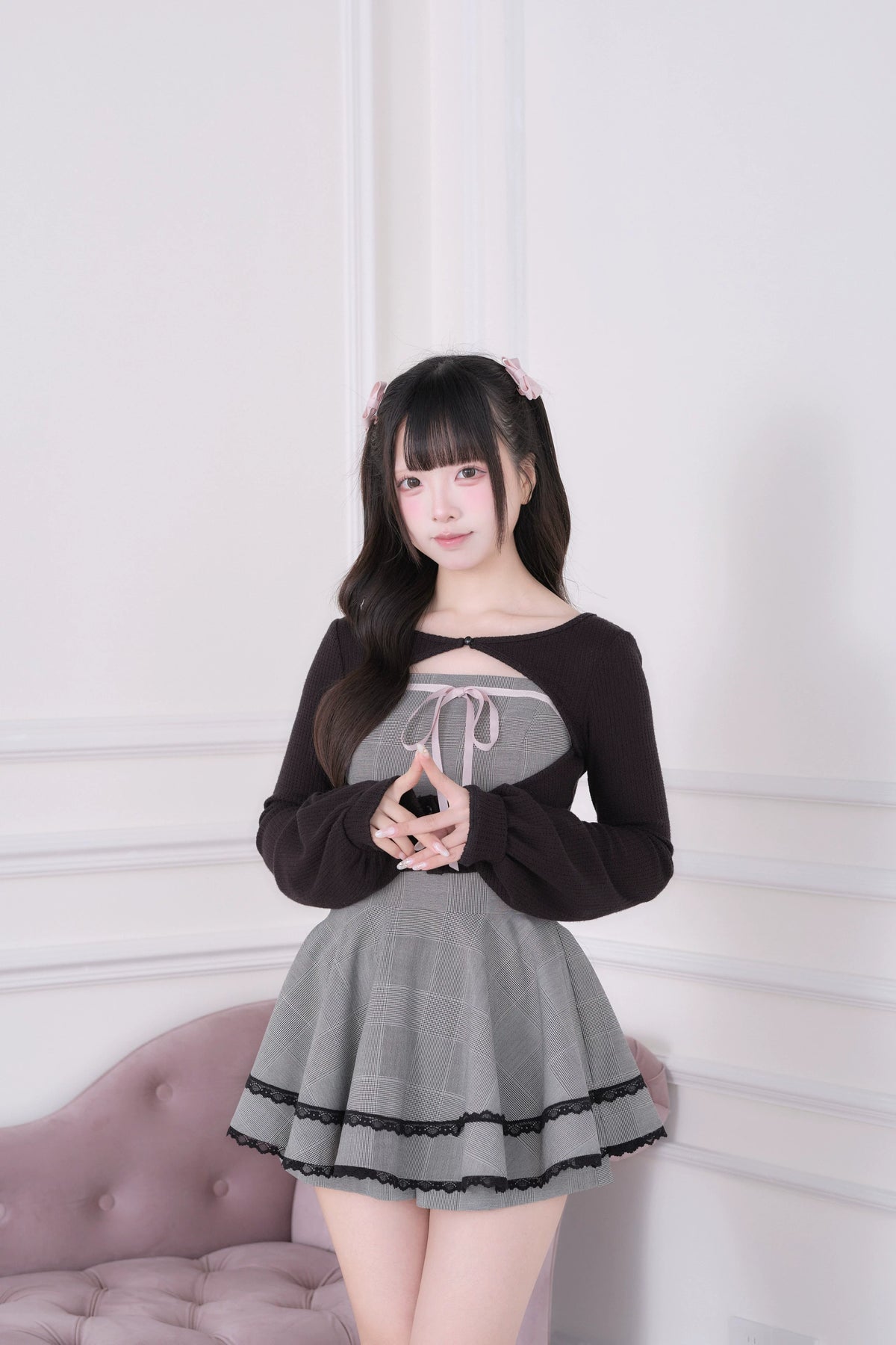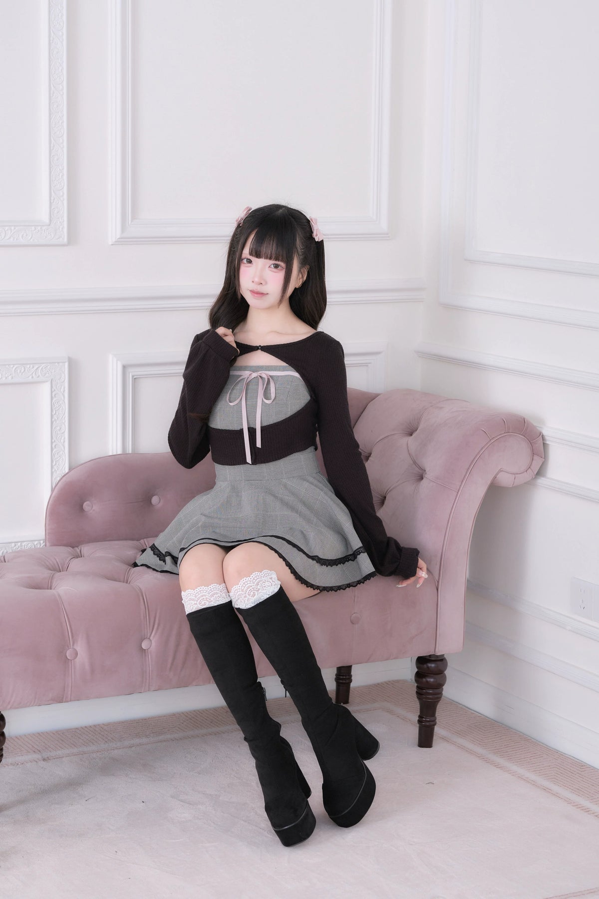 • Ryousangata Outfit: Classic plaid meets lace trim for an effortlessly sweet vibe.