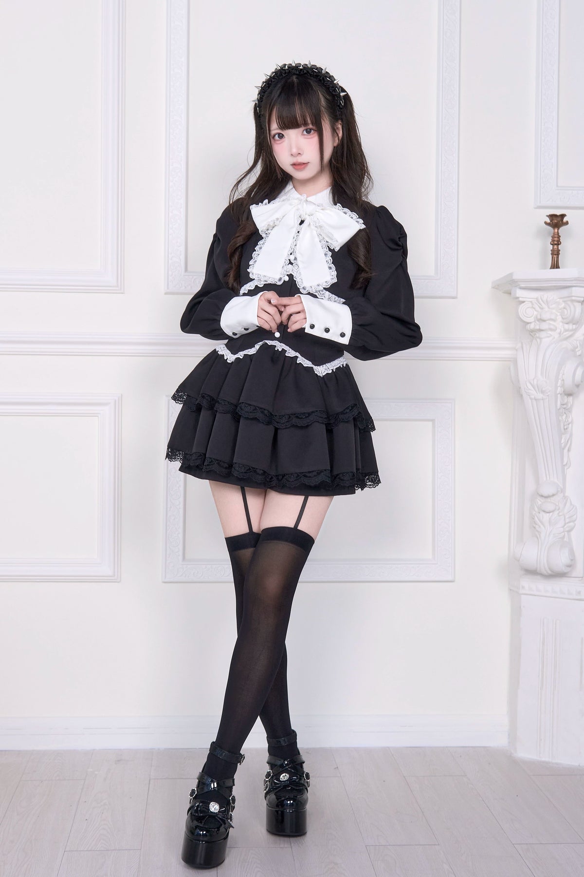 • Jirai Kei Dress: Slim-fit dress design with elegant white lace and pleated details for a refined, delicate look.