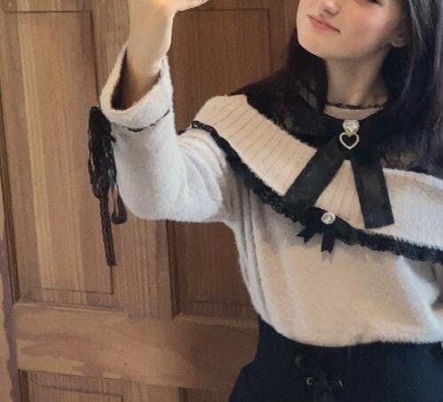 Jirai Kei Sweater Lace Patchwork Open Shoulder Knitted Top 40336:716352