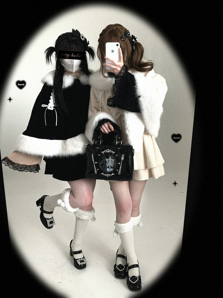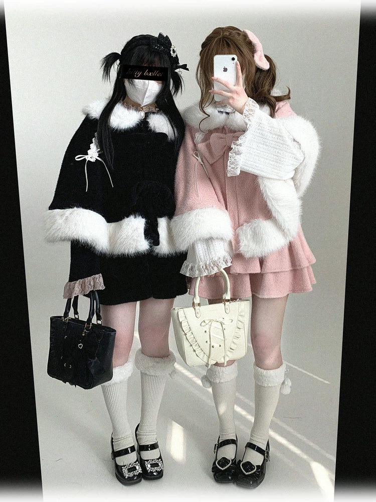 • Sweet Style Cape: Lovely rabbit-themed design, decorated with fluffy trim and two pretty bows.