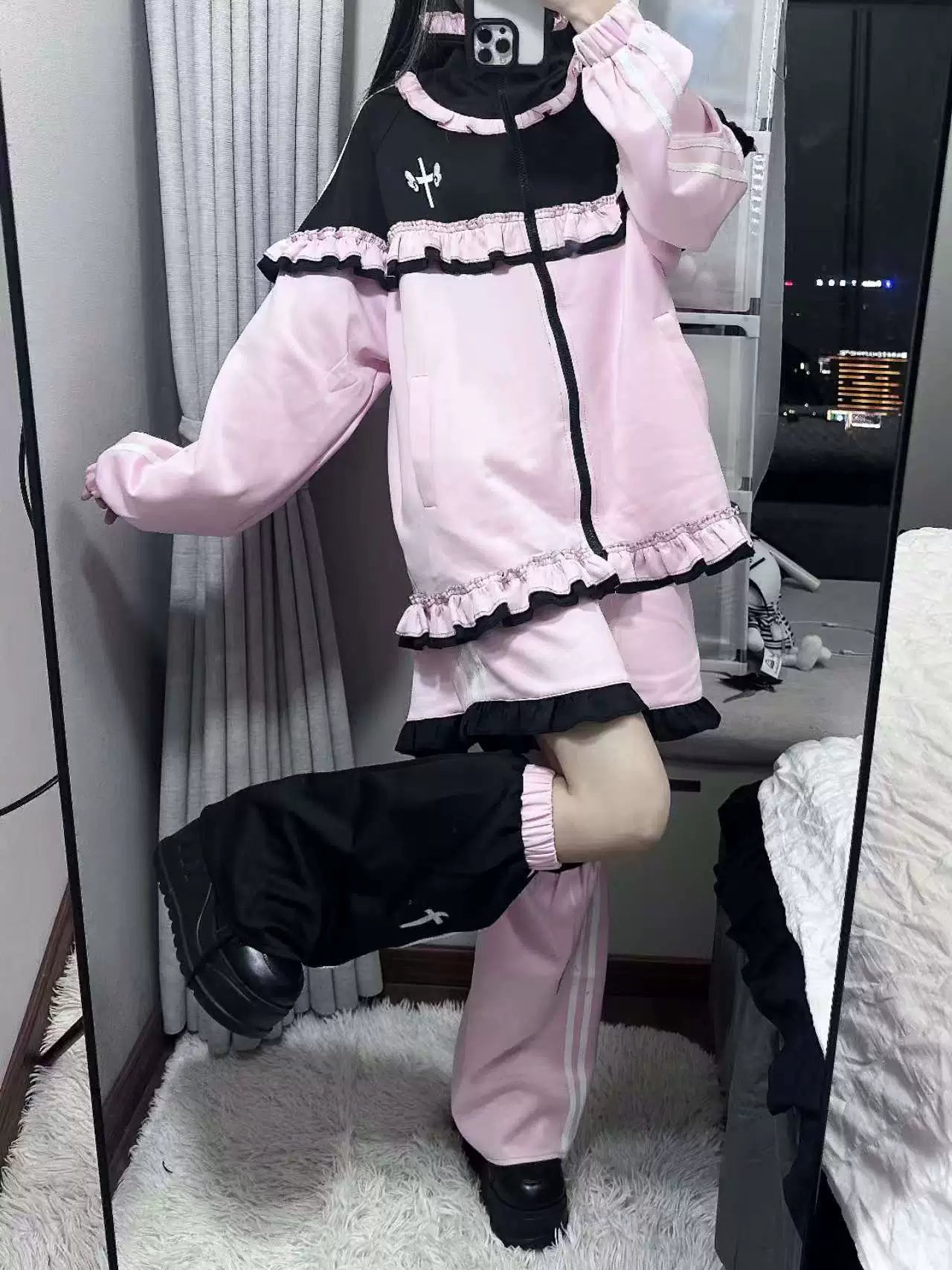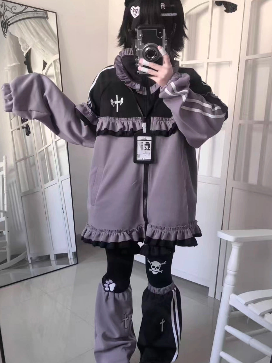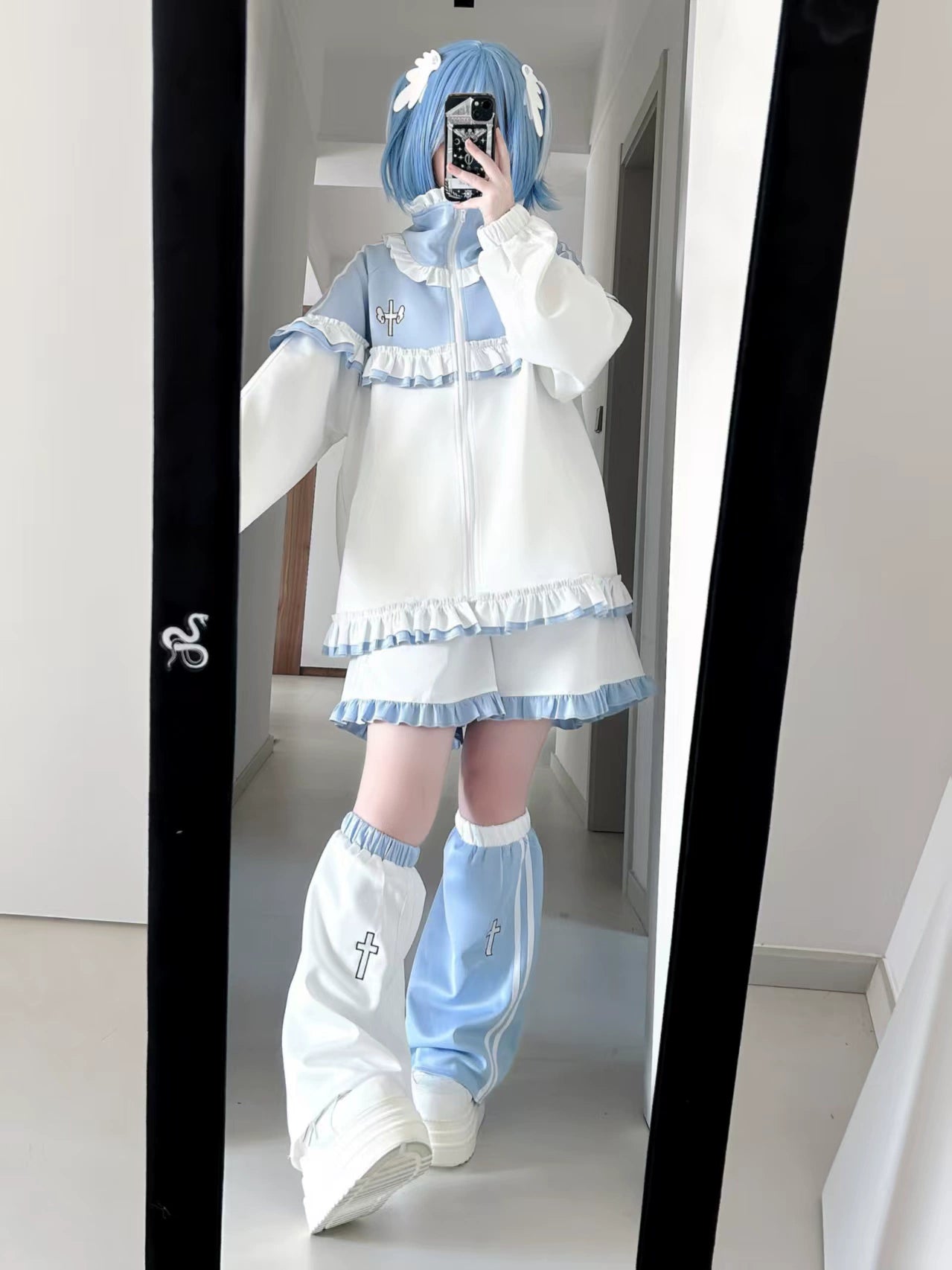 • Tenshi Kaiwai Outfit: This loose sporty style set features color-blocking, delicate ruffles, and cute embroidery details, making it a standout design for streetwear.