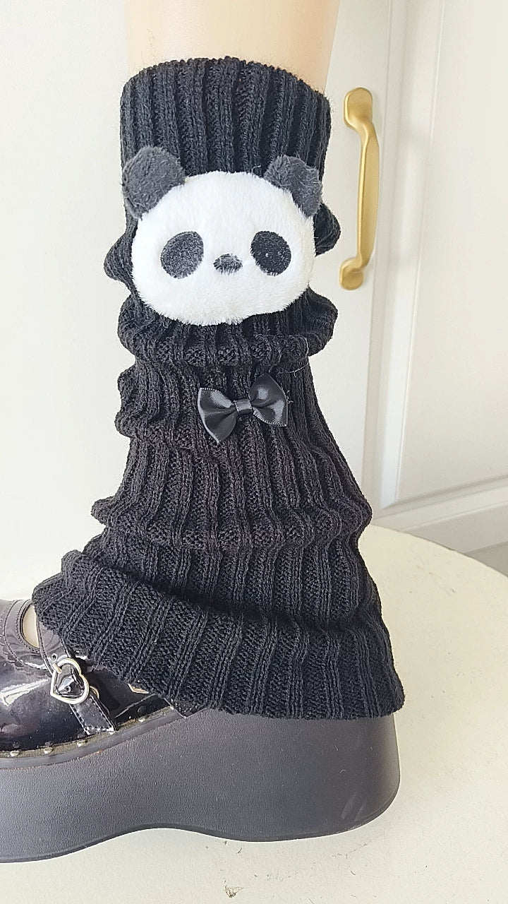 Black/White JK Leg Warmers, Panda and Bow Accents
