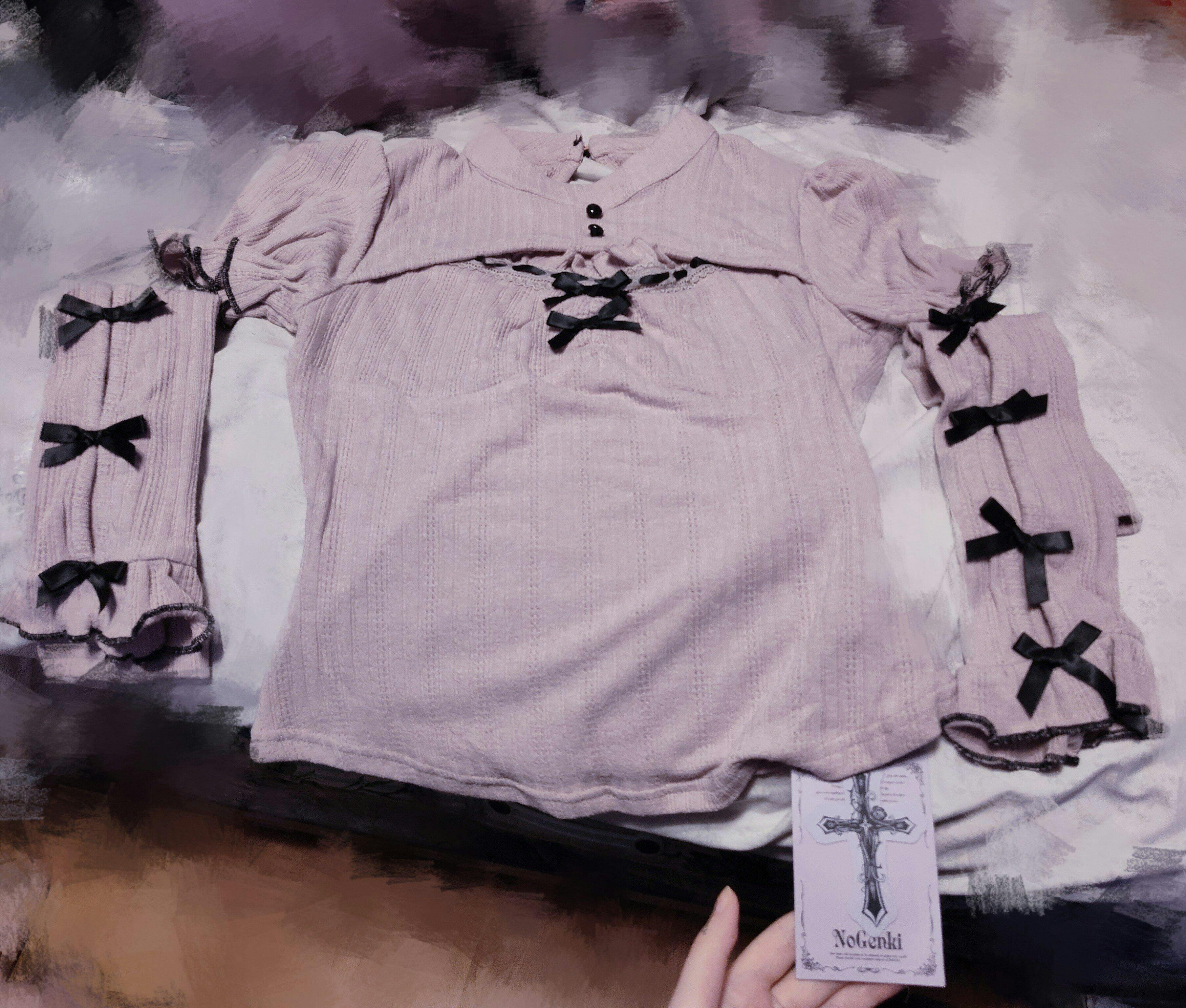 • Top: Stretchy knit design; puff short sleeves with a pair of arm sleeves; sexy cut-out on the chest.